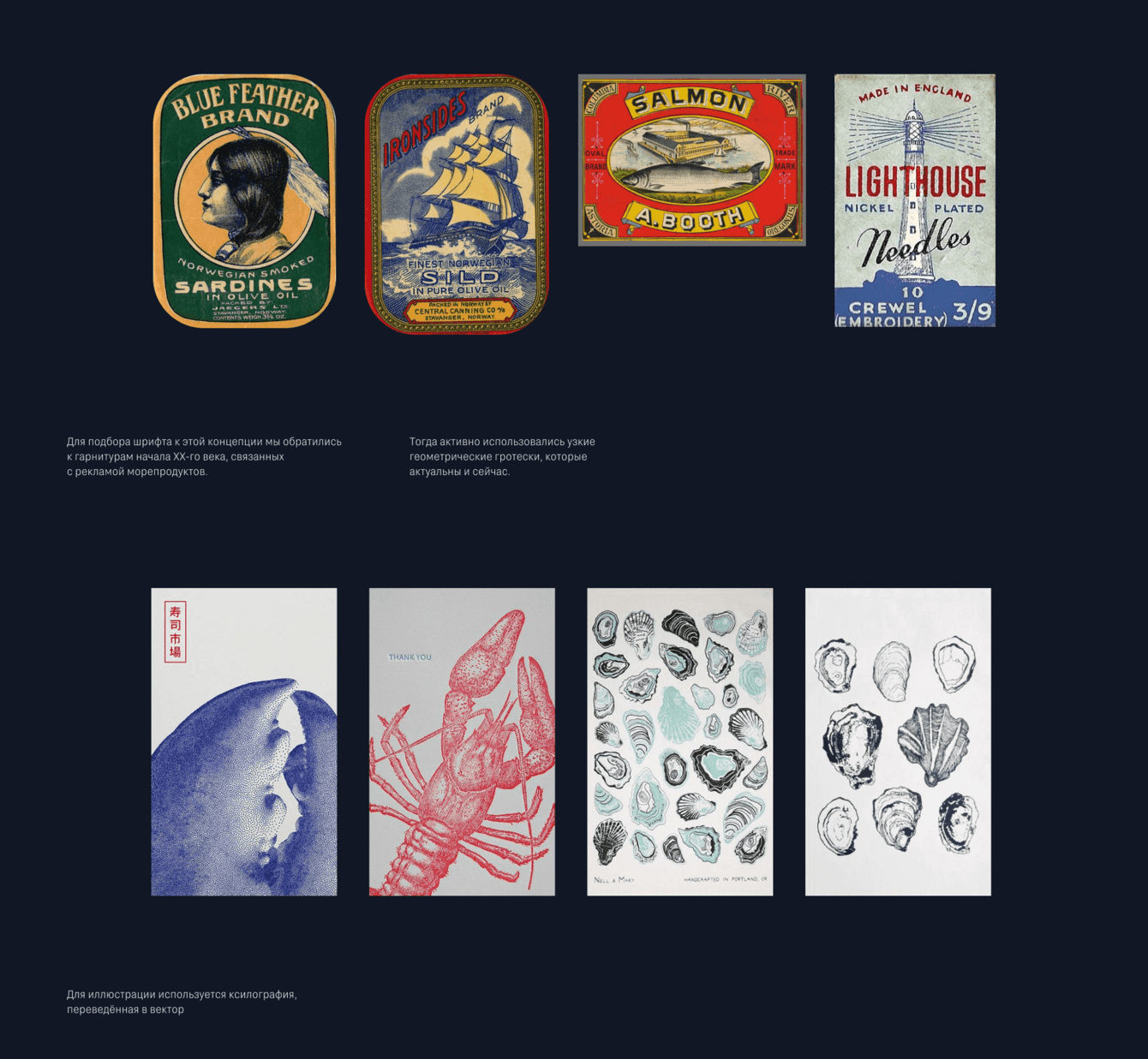 Мидии, устрицы и креветки это, прежде всего, выраженная фактура и натуральная текстура. Поэтому цвета бренда должны быть максимально органическими, без неестественных оттенков и стерильных текстур. Бренд должен ощущаться тактильно.