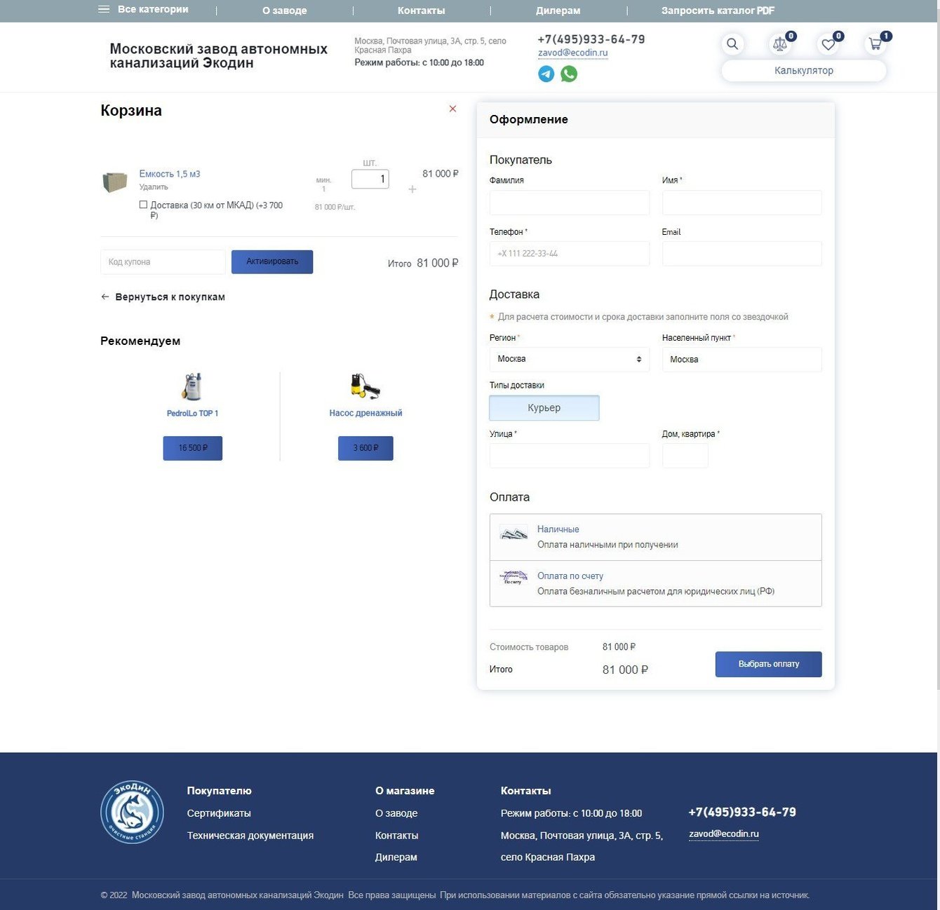 1) Был разработан калькулятор подбора септиков на отдельной посадочной странице