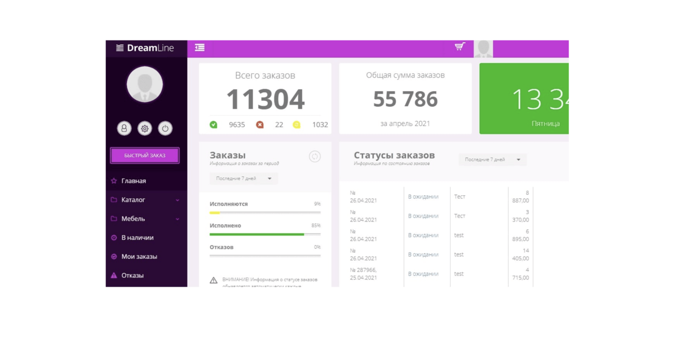 Благодаря предложенной нами системе, каждый Заказ попадает конечному Покупателю уже на следующие сутки после оформления. Чтобы система работала как часы, особое внимание уделили Дилеру - ключевому звену между покупателем и производством. Именно для Дилера предназначен личный кабинет, разработка которого стартовала уже на следующем этапе.
