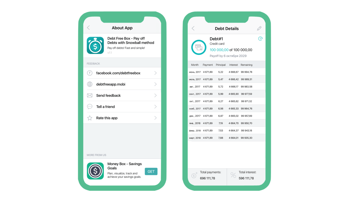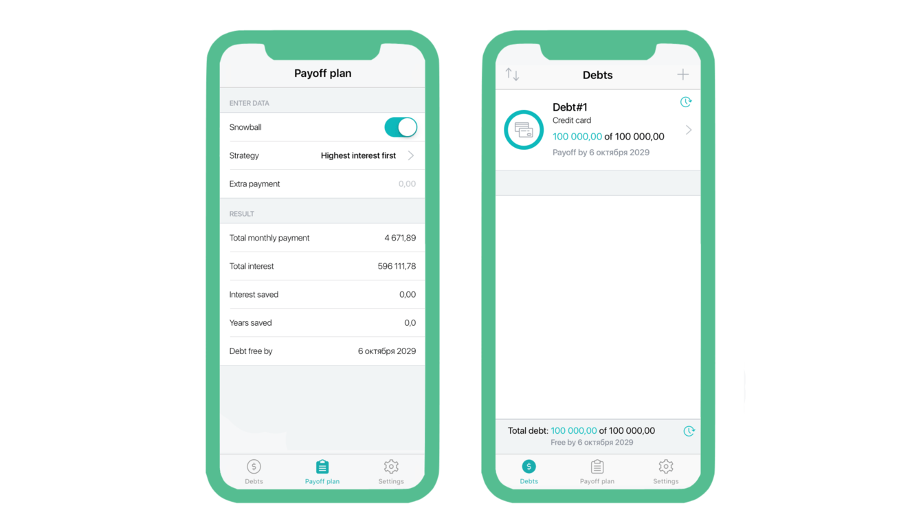 1. Реализовали логику метода Snowball в приложении. По текущей методике приложение выставляет приоритет в платежах по самым большим кредитам, за остальные кредиты приложение рассчитывает минимально возможный обязательный платеж.