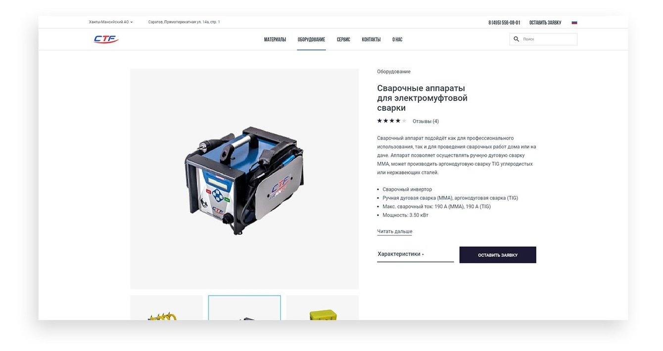 Реализованы блоки с информацией о компании заказчика и его партнерах, новостями статьями и информацией об обучении в центре сварщиков и специалистов сварочного производства.