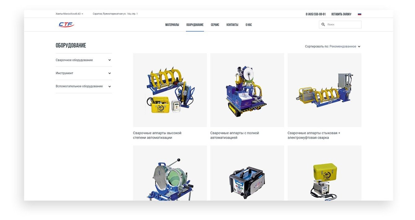 Было переработано меню и реализован функционал для поиска материалов по сайту. Создана функция выбора региона заказа и разработан каталог товаров с системой фильтрации по категориям.