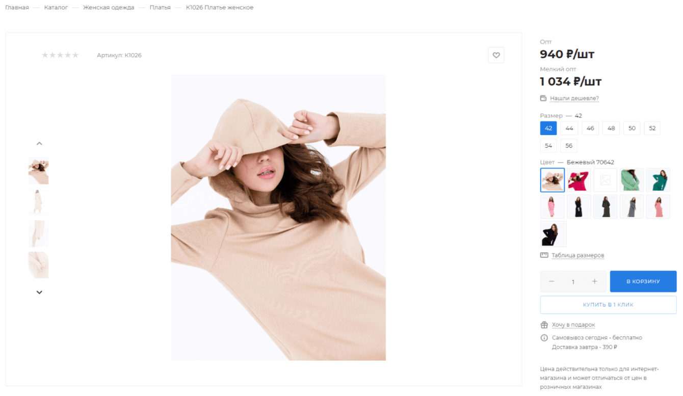 • Детальная карточка за счет крупного фото выглядит более привлекательно.