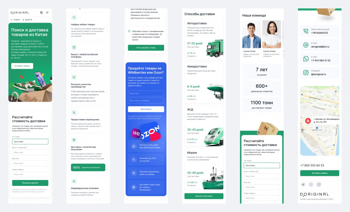 В разделе «Способы доставки» мы через карточки показали сроки и стоимость доставки для каждого типа транспорта — от авиадоставки до морских перевозок, чтобы пользователь мог лучше понять какой вариант подходит для него.