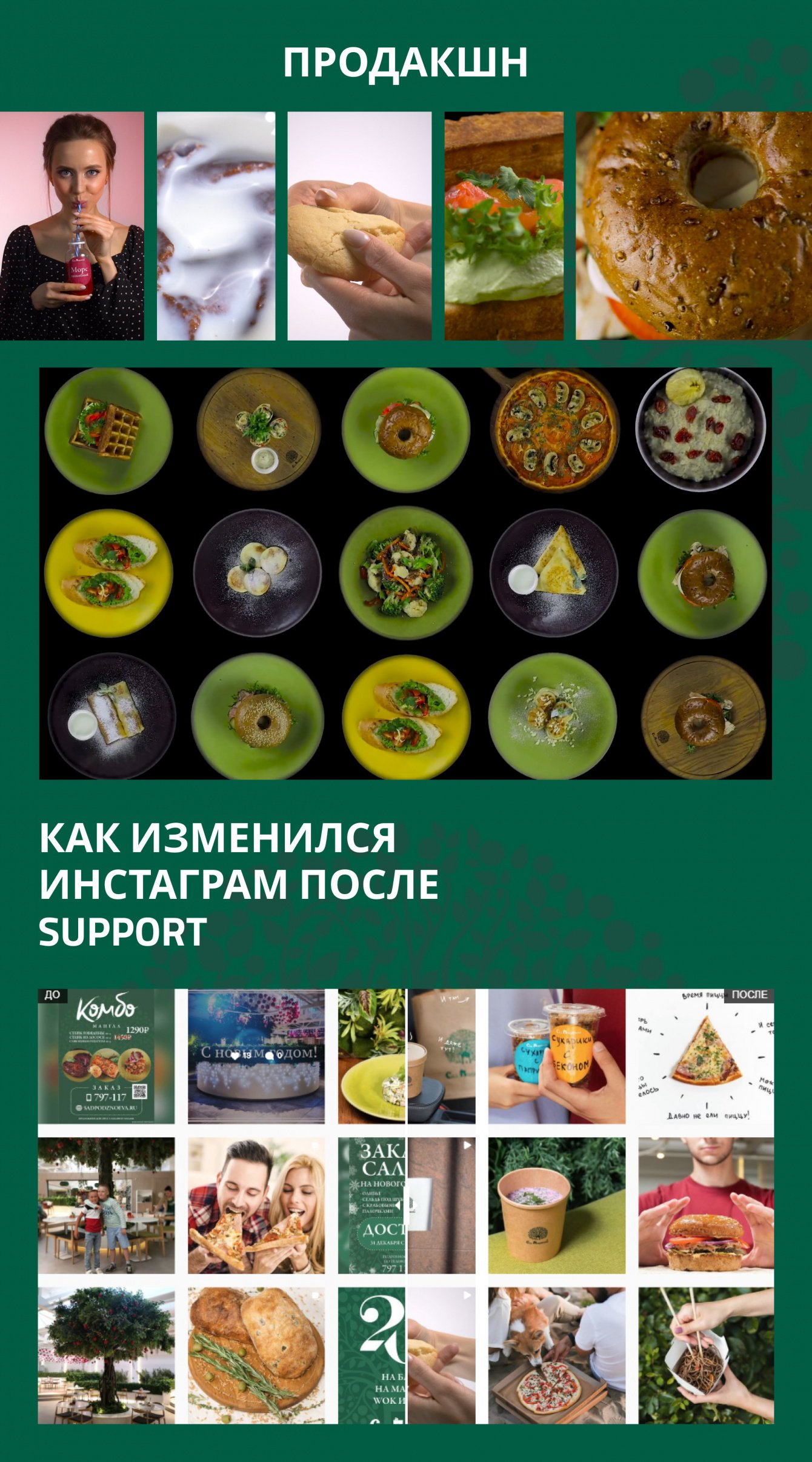 Устроили food-съёмку для каждой позиции меню и еще 15 000 фото для создания сочного контента для ленты социальных сетей и сайта доставки.