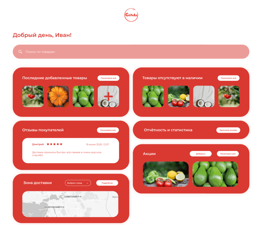 Необходимо было в очень короткие сроки разработать приложение по доставке еды и товаров для дома. Более того необходимо было интегрироваться со системой складского учета 1С и базами предприятия.