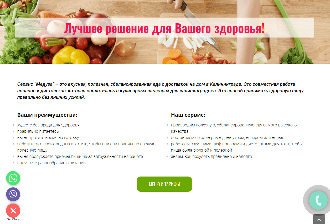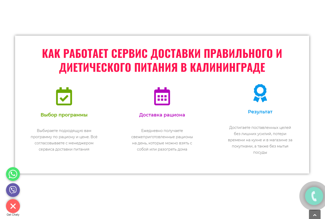 Проект сайта-сервиса доставки правильного и диетического питания в Калининграде. Заказчик предоставил все необходимые материалы. Проект реализован быстро и в полном объёме.