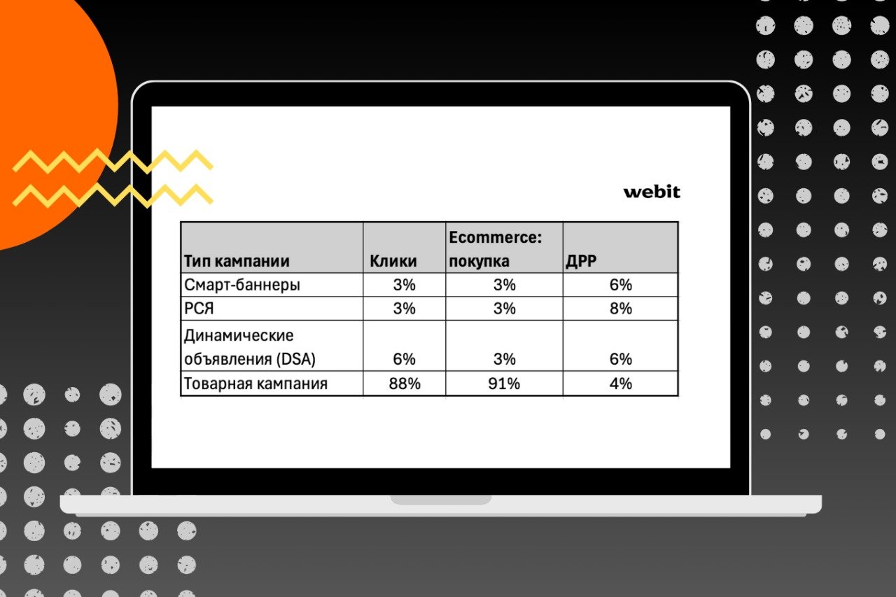 - ДРР составлял не более 7%, тогда как, по опыту Webit, в B2B-сегменте он варьируется от 10% - до 22%;