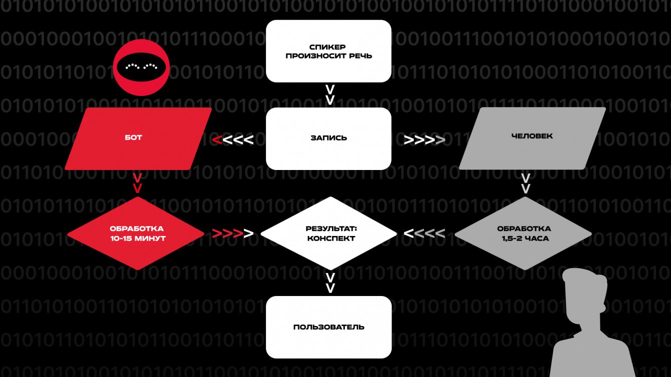 Мы получили задачу подготовить и выпустить краткие сводки по шести докладам, намеченным на первую часть мероприятия, а последующие обсуждения с большим количеством разноголосых участников (и не всегда с микрофонами) решили обработать по возможности. Но бот обсчитывал все быстро и без сбоев, поэтому мы продолжили работу и подготовили еще шесть сводок — по презентациям участников разборов и по обсуждениям экспертов.