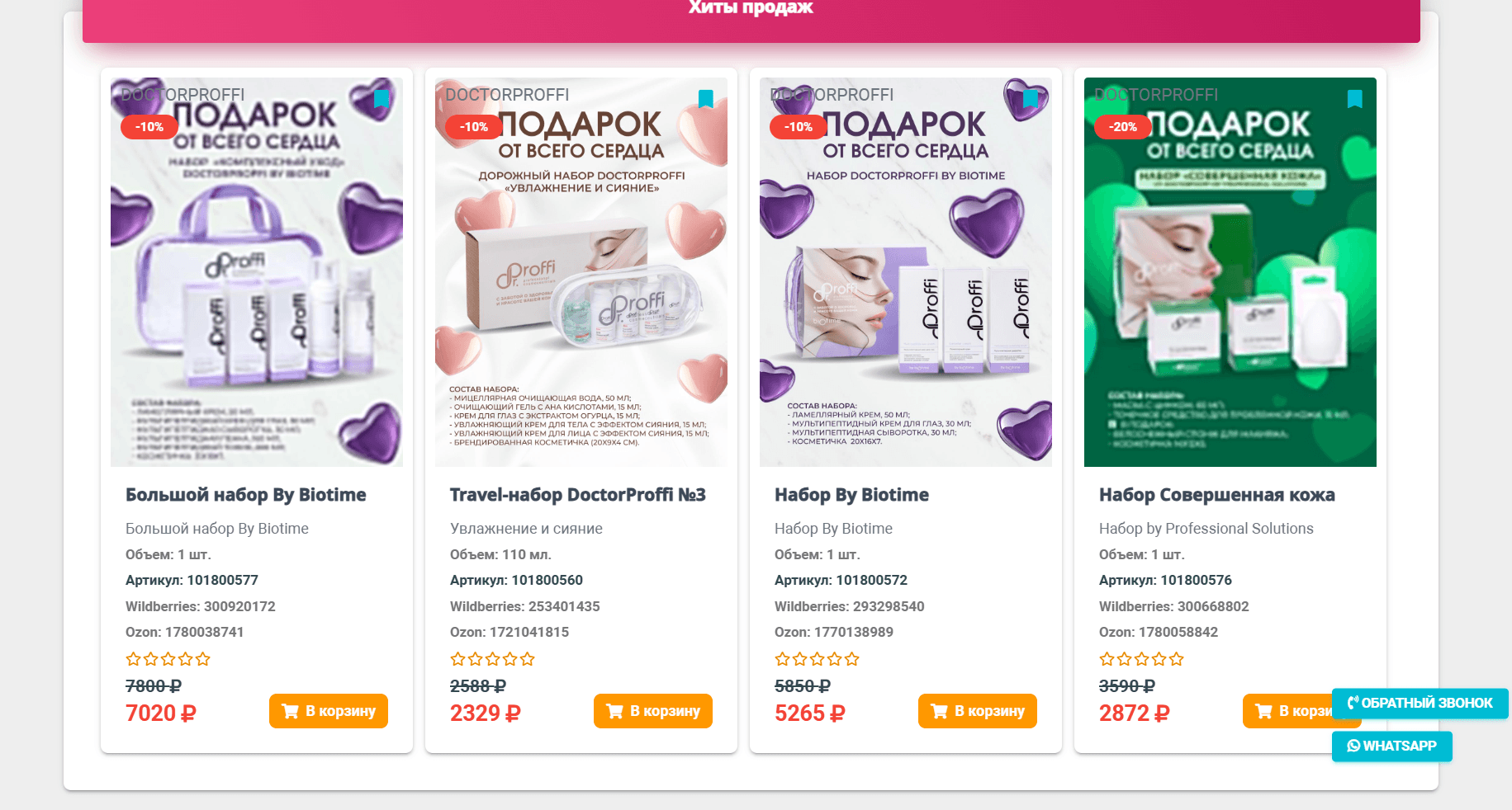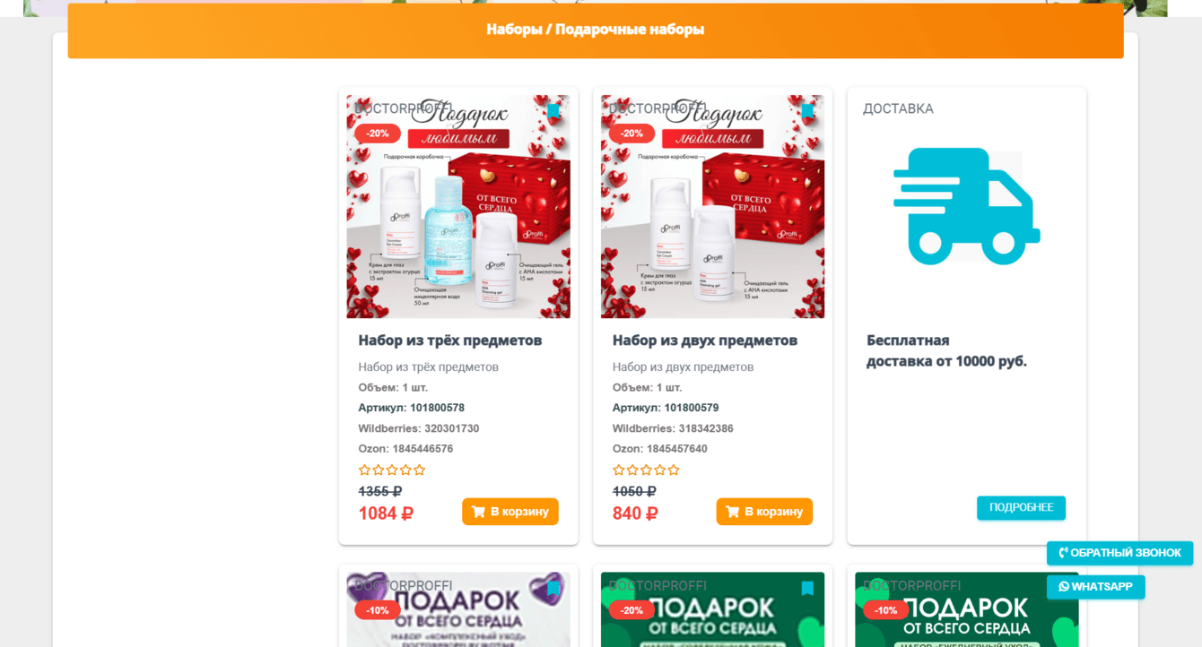- Созданы интерфейсы для информирования пользователей: ассортимент, условия сотрудничества, акции, новости, полное описание товаров.