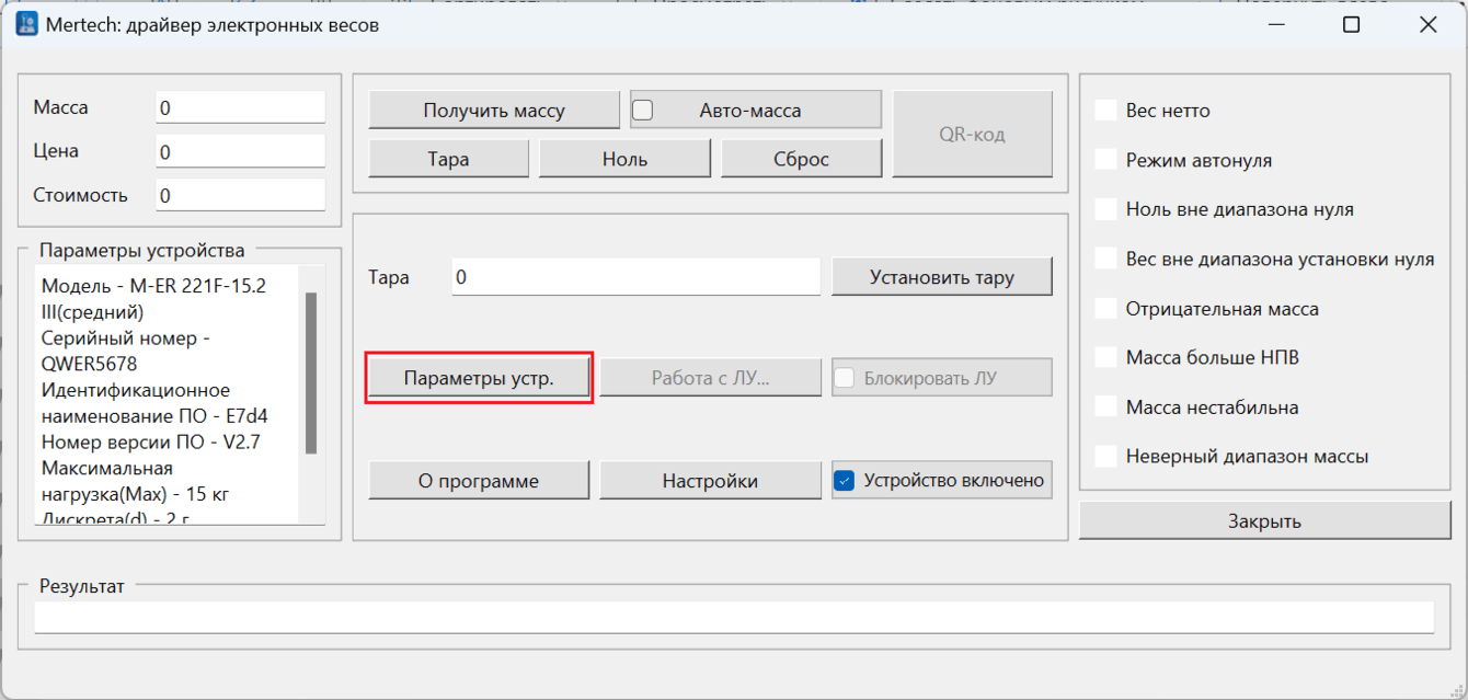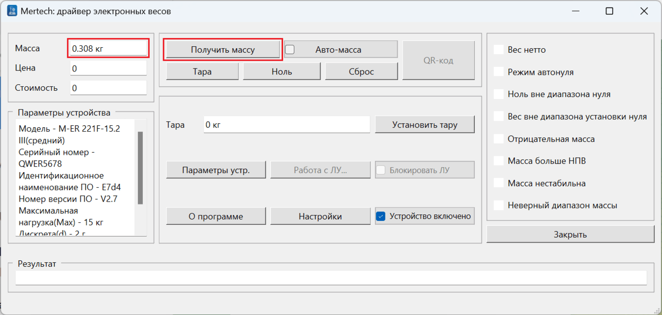 2. Создано приложение "Менеджер весов" для ОС Windows и Linux, реализующее следующие возможности:
