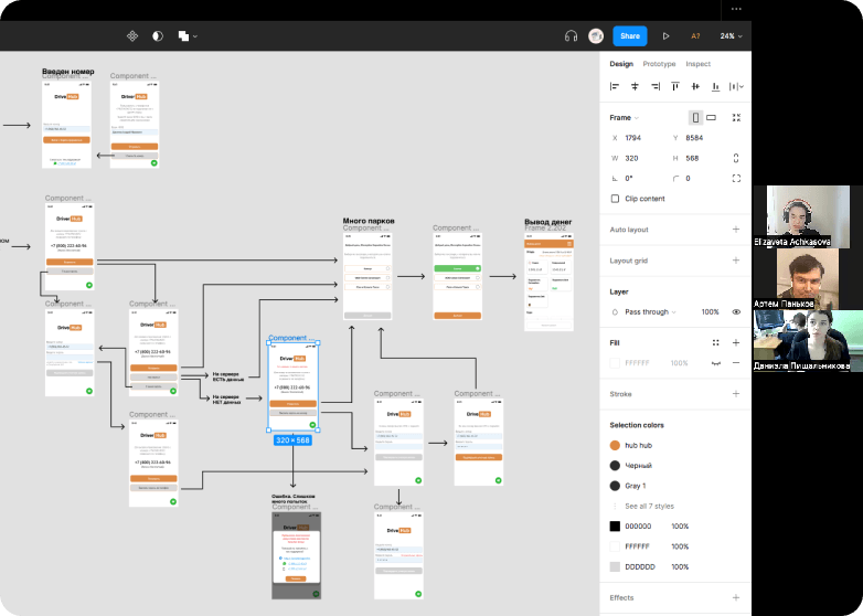 - Детали (например, решили, как будут вести себя кнопки, когда пользователь на них нажмёт);