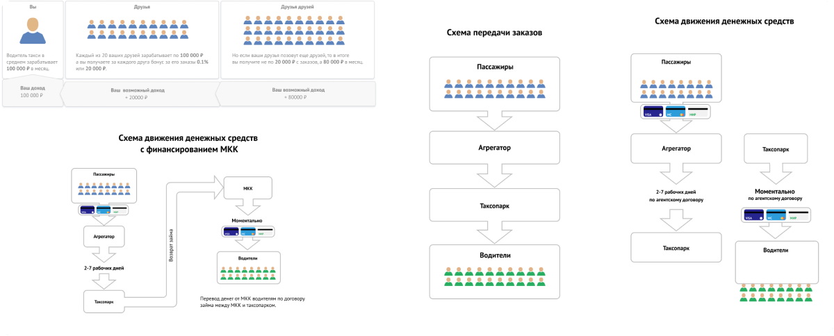 - Реферальная программа, которая позволила водителям зарабатывать за приглашение других водителей в таксопарк;