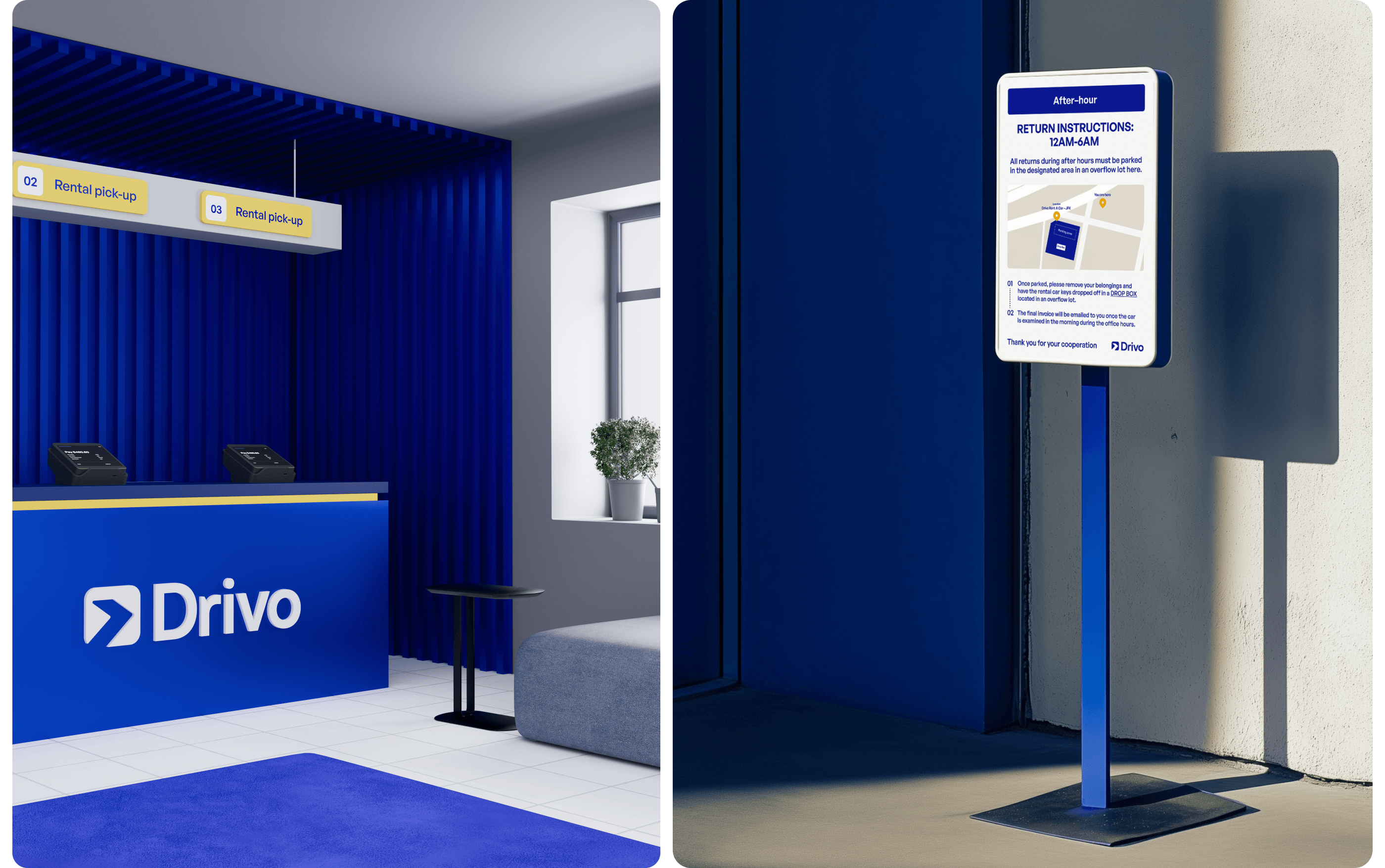 Точки присутствия Drivo визуально отличались друг от друга. В одной локации — яркие терминалы, в другой — стандартные стойки без узнаваемых элементов. Клиенты не всегда понимали, что перед ними именно Drivo, что снижало уровень доверия и влияло на конверсии.
