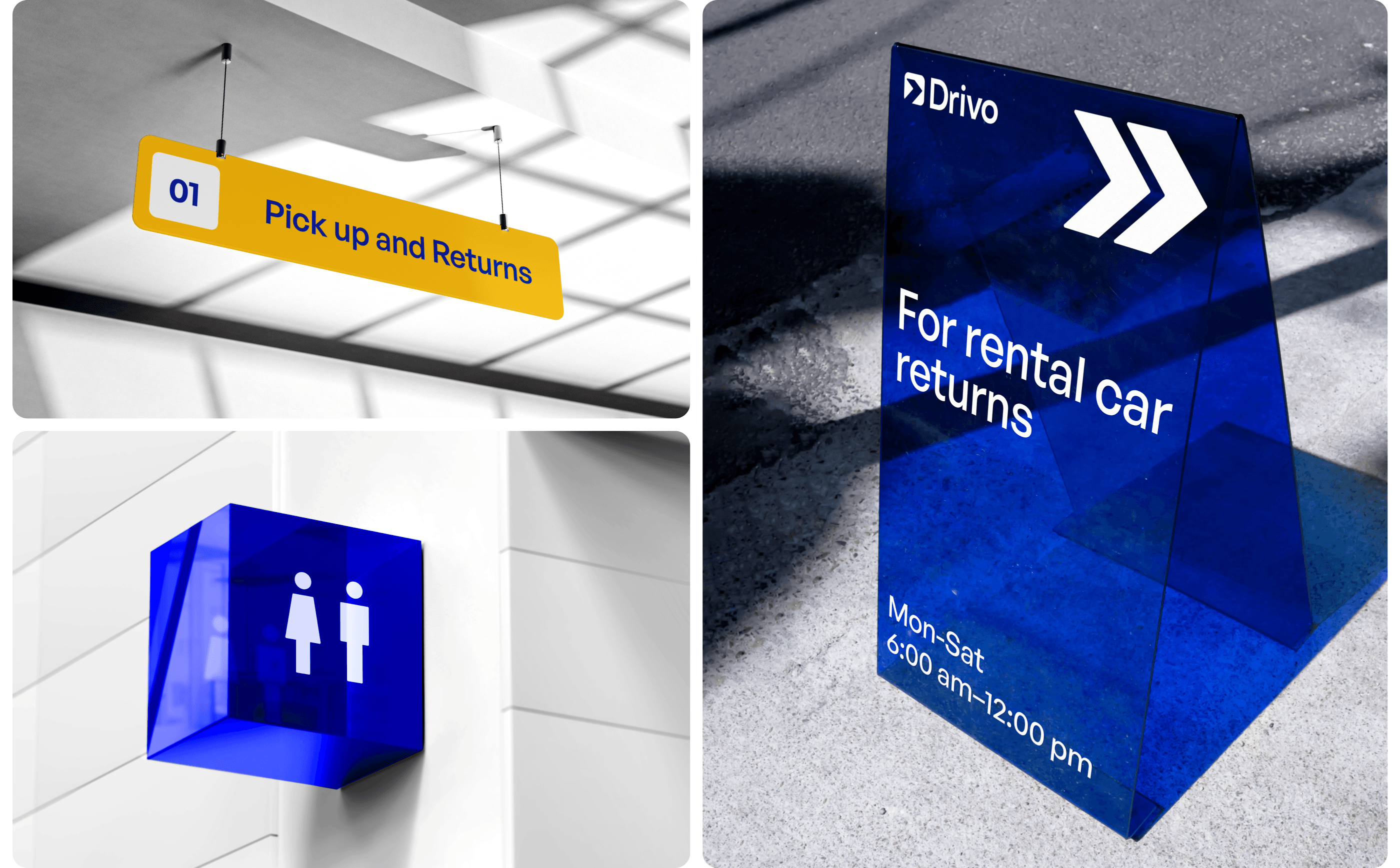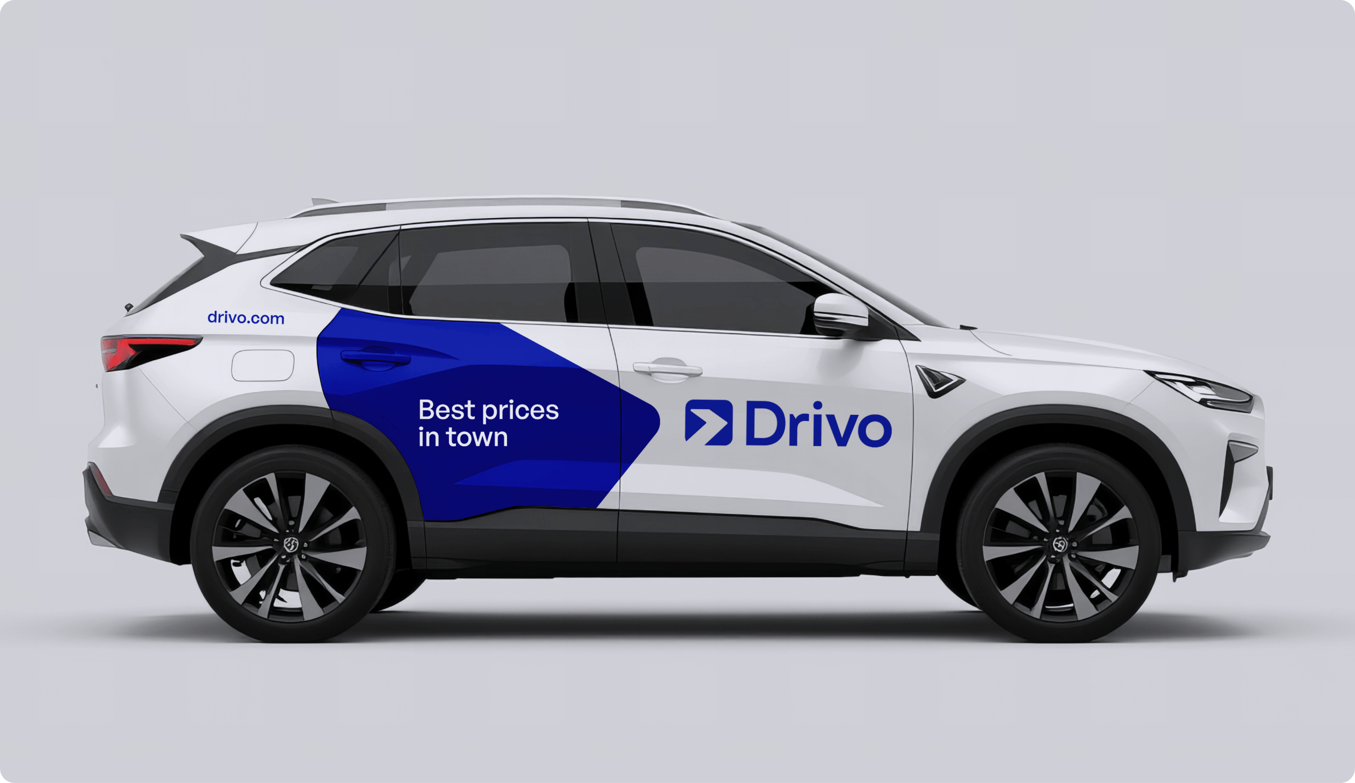 2. Разработка нового фирменного стиля: создали айдентику, отражающую технологичность, удобство и динамичность бренда. Визуальный стиль объединил офлайн и digital-пространства, делая Drivo узнаваемым как на стойках аренды, так и в соцсетях.