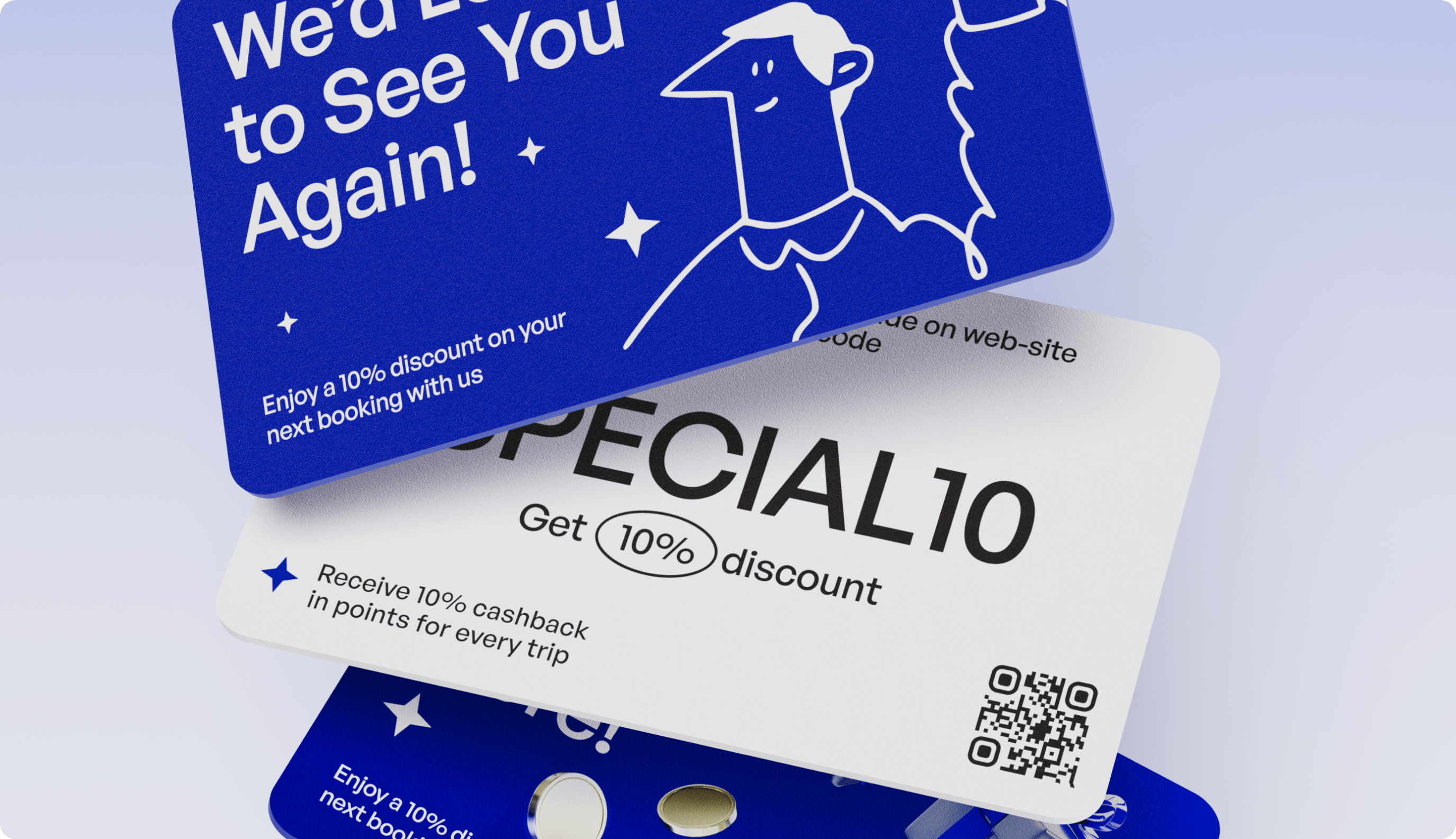 2. Печатные материалы: визитки, буклеты, стикеры и скидочные карты с понятной типографической иерархией делают коммуникацию более ясной и запоминающейся.