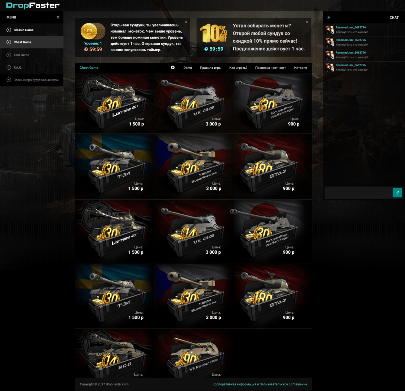 Создать портал игр по выпадению предметов для World of Tanks и бота для отправки выигрышей пользователям.