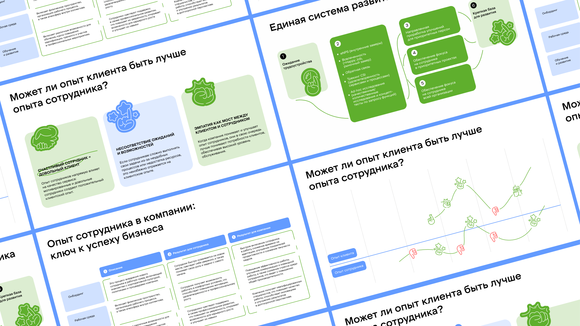 Мы сделали линии мягкими и яркими, а на их концах добавили руки — символ общения, объединения и взаимопомощи. Визуализация прозрачности опыта и подсветки проблем усилила ощущение открытости и доступности решений.