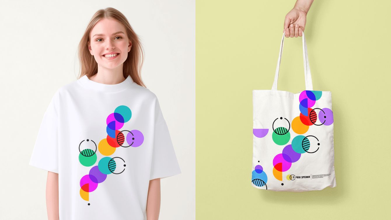 Имидж основан на символизме: центральные образы напоминают одновременно глаза, очки и шрифт Брайля. Пересечение форм отражает пересечение смыслов и людей с их уникальным мировоззрением. Лаконичность визуального языка здесь имеет и функциональное значение — создает возможности для тактильной навигации.