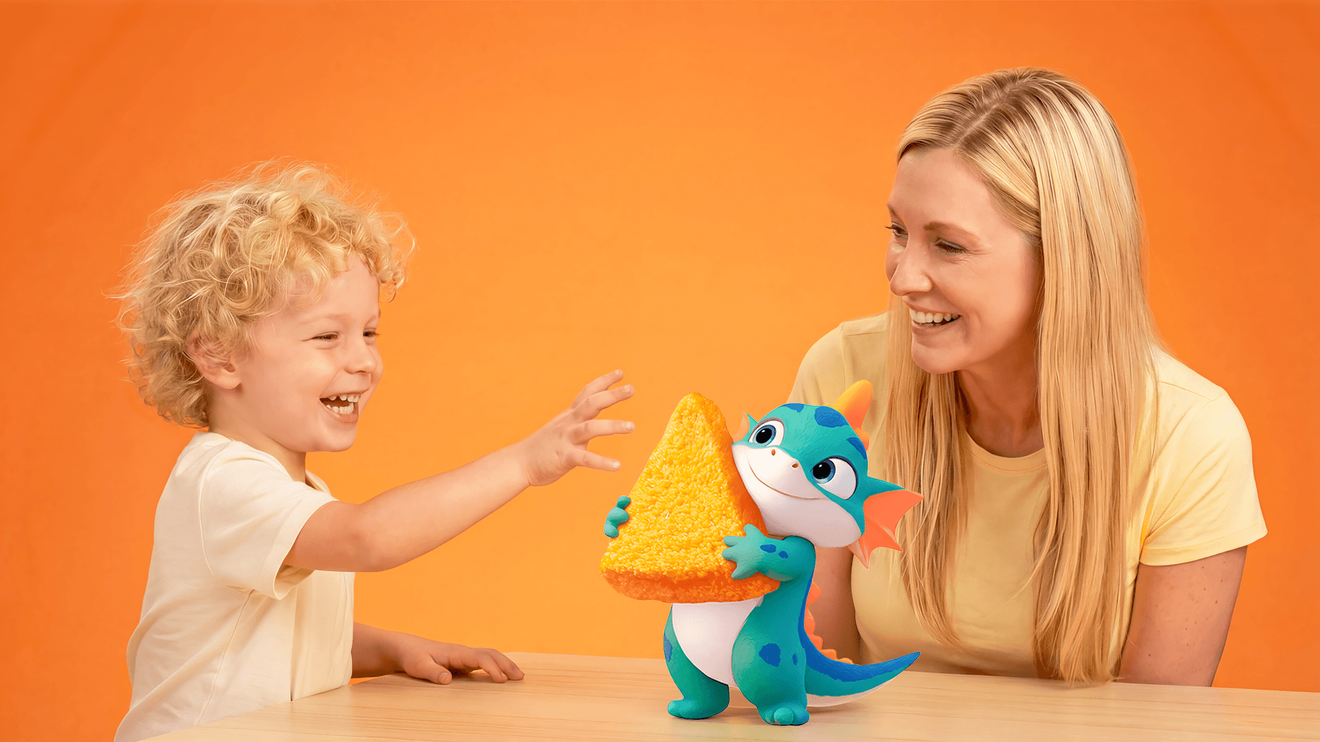Чтобы покорить самый юный сегмент аудитории и вызвать реакцию «Мам, хочу!», было решено добавить маскота — дружелюбного дракончика, обнимающего наггет и ассоциируемого с волшебством.