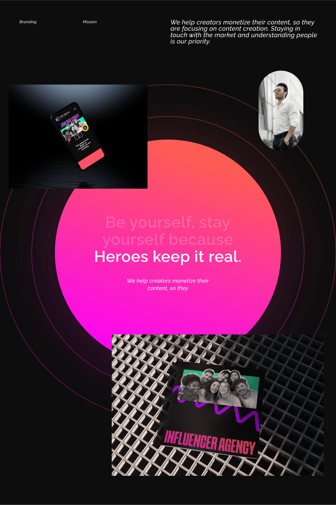 Весь визуальный стиль проекта был создан нашей командой с нуля — это настоящее креативное безумие, превращённое в максимально продуманный интерфейс, как эльфийский клинок, выкованный мастерами из Средиземья. Основная идея заключалась в том, чтобы визуально передать те чувства и эмоции, которые испытывают авторы цифрового контента, когда создают свои продукты. Яркие цвета, нестандартные сетки, эффектные анимации и визуальные эффекты напоминают современное искусство, превращая сайт в целое шоу, которое не оставляет равнодушным.