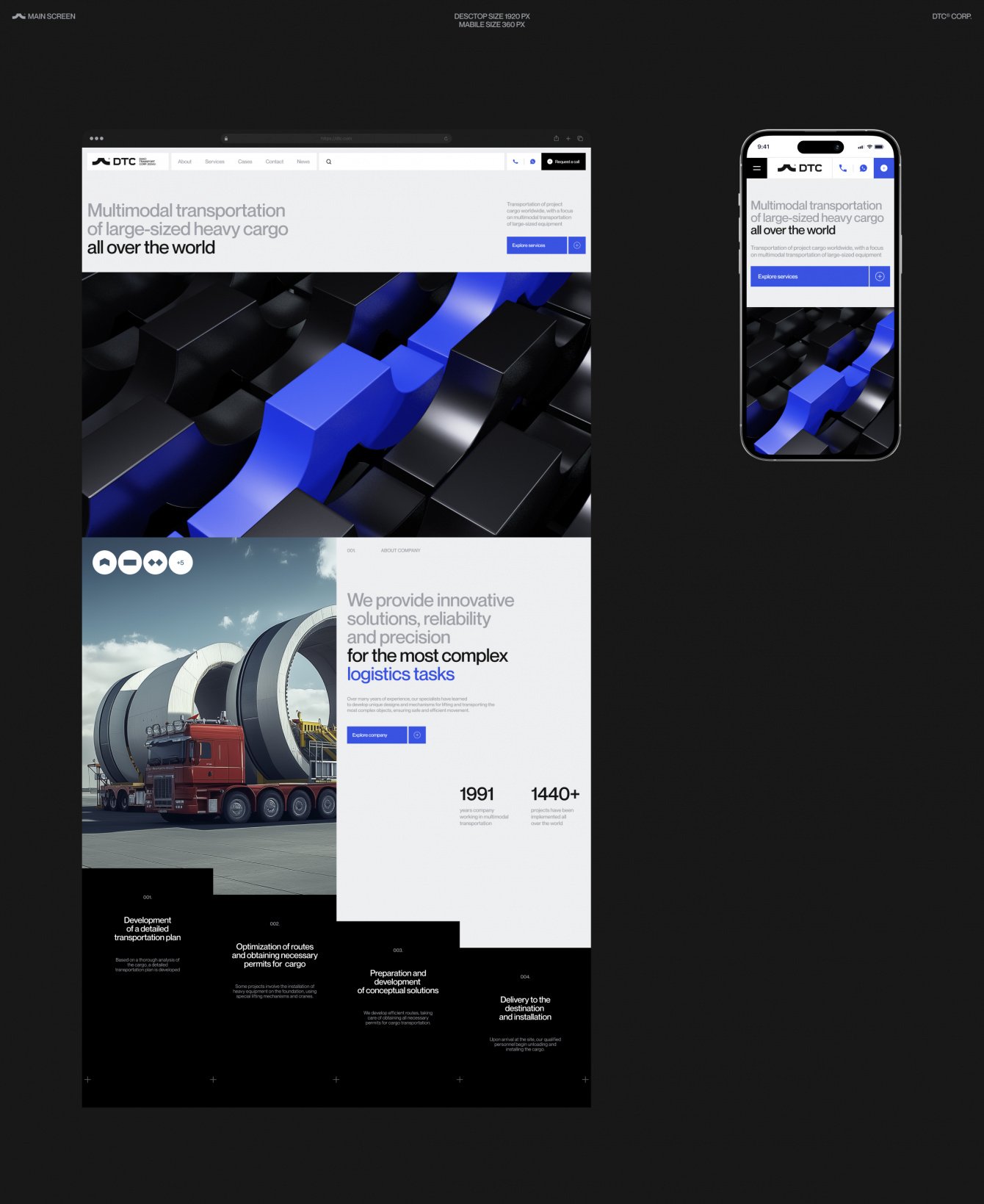 В процессе мы провели мощнейший ребрендинг, который получился уверенным, отражающим стабильность и опыт компании в логистике. Создали сайт, который интуитивно понятен для клиентов – крупных корпораций и промышленных гигантов, нуждающихся в надёжных и эффективных логистических решениях.