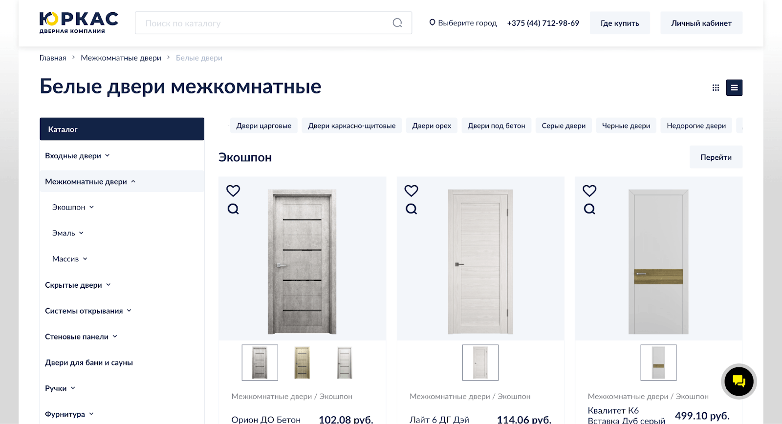 В стандартном «Битриксе» фильтры не умели работать с нашим каталогом из коробки: при выборе цветов или цен движок показывал карточки моделей, не подставлял вариант, который подходит по нужном цвету или цене. Получалось, что выбранная дверь как бы есть, но ее как бы нет, как кот Шредингера.