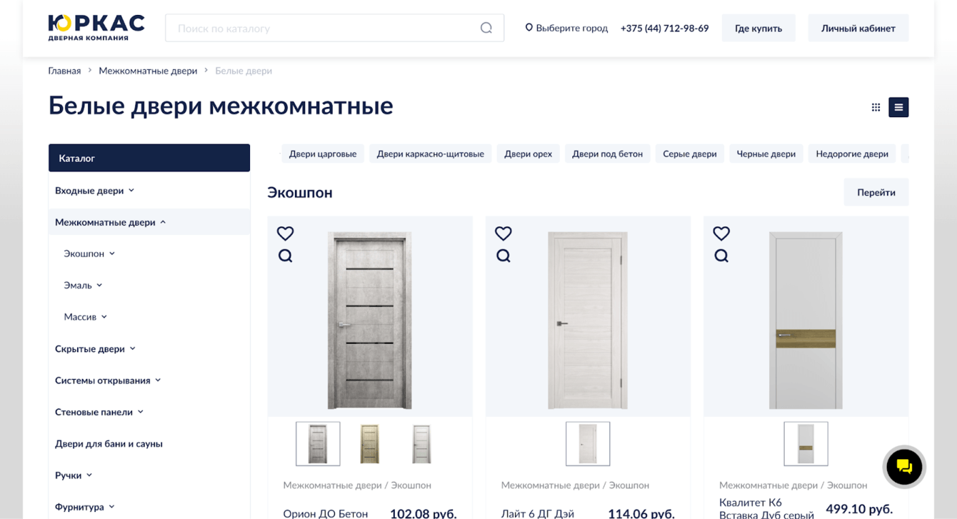 Основной вызов заключался в том, чтобы сделать каталог удобным при огромном количестве вариаций дверей. На старом сайте этого не было, и пользователи путались в навигации. Мы переработали логику категорий и добавили фильтрацию, которая учитывала специфику ассортимента. Вынесли старые двери, смазали петли — каталог заработал без скрипа.