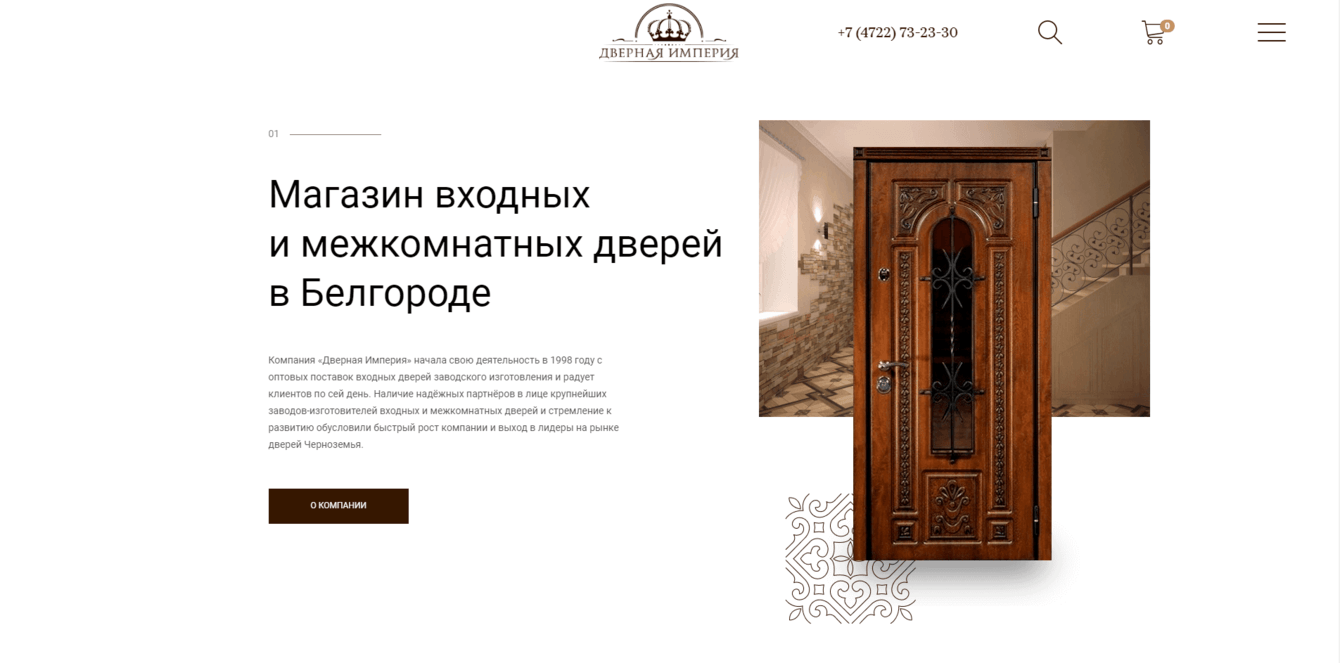 Представление компании «Дверная империя» в интернете с возможностью онлайн-продажи.