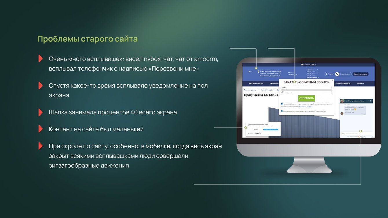 Заказчик был не готов к редизайну сайта и просил показать результаты с тем, что есть.