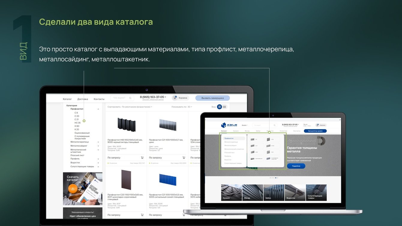 2 - каталог собран по применимости материалов. Соответствует запросам применимости например: купить кровельный профлист, купить профлист для забора, купить материал для фасада и тд.