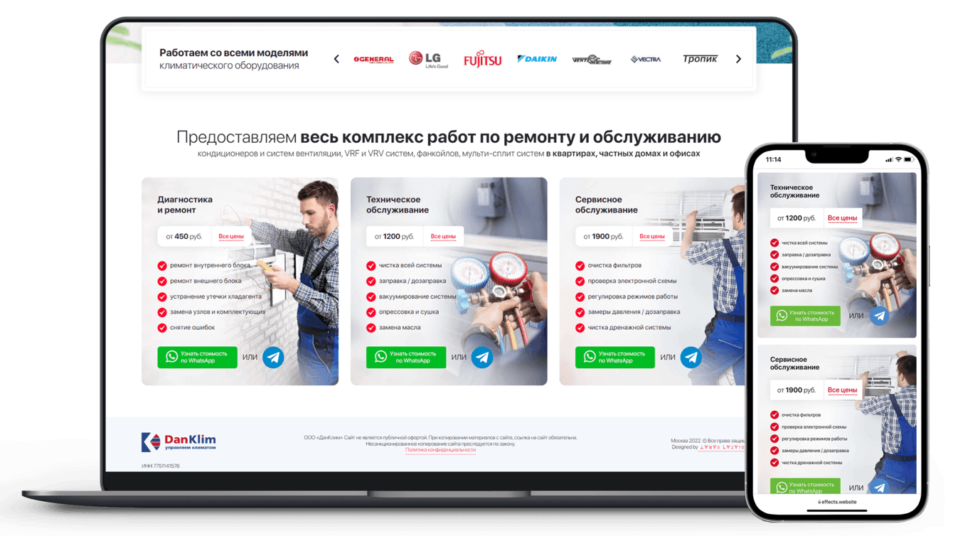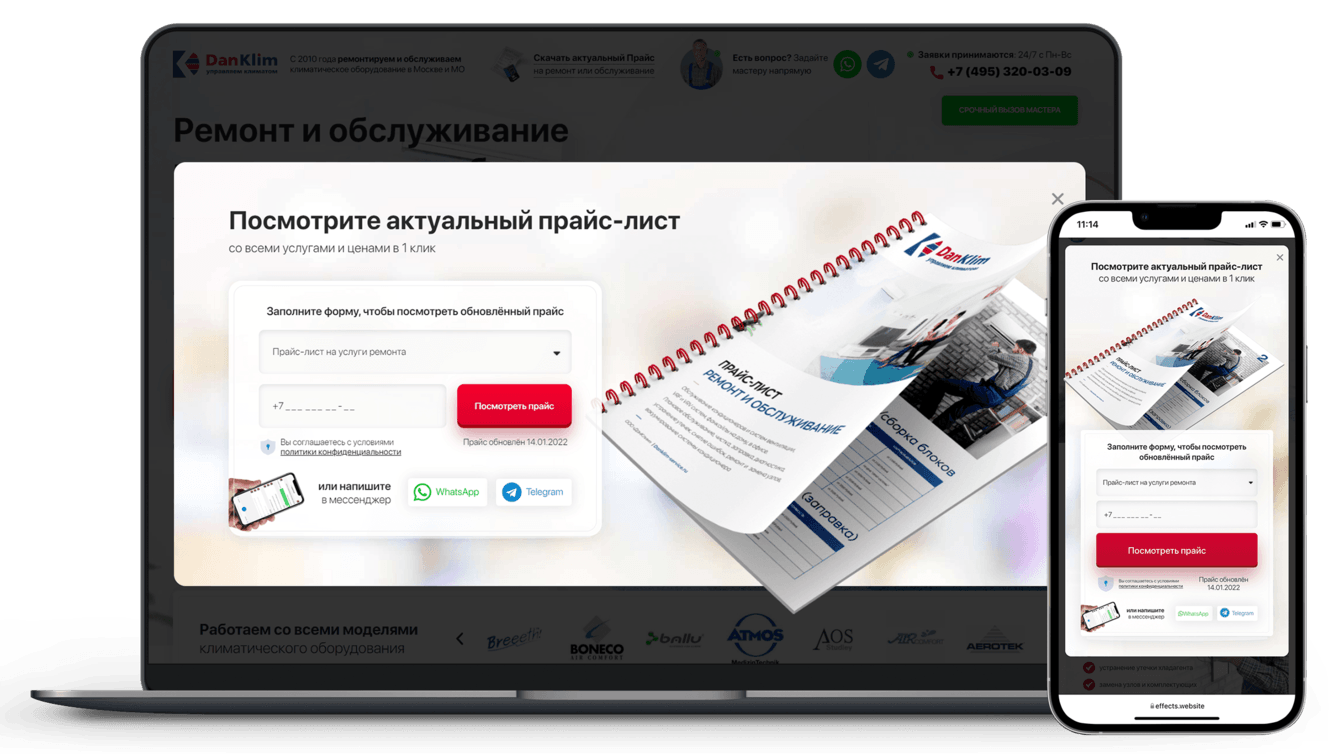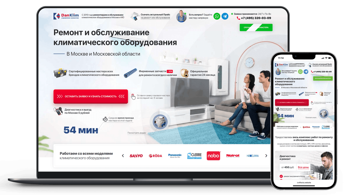 Создать лендинг и заточить будущий сайт под сегмент B2С, с целью получать качественный траффик. Также поднять конверсию и показать ассортимент услуг. Дополнительно дать возможность пользователям быстро вызвать мастера и скачать прайс по запросу. Все это должно иметь возможность самостоятельного редактирования.