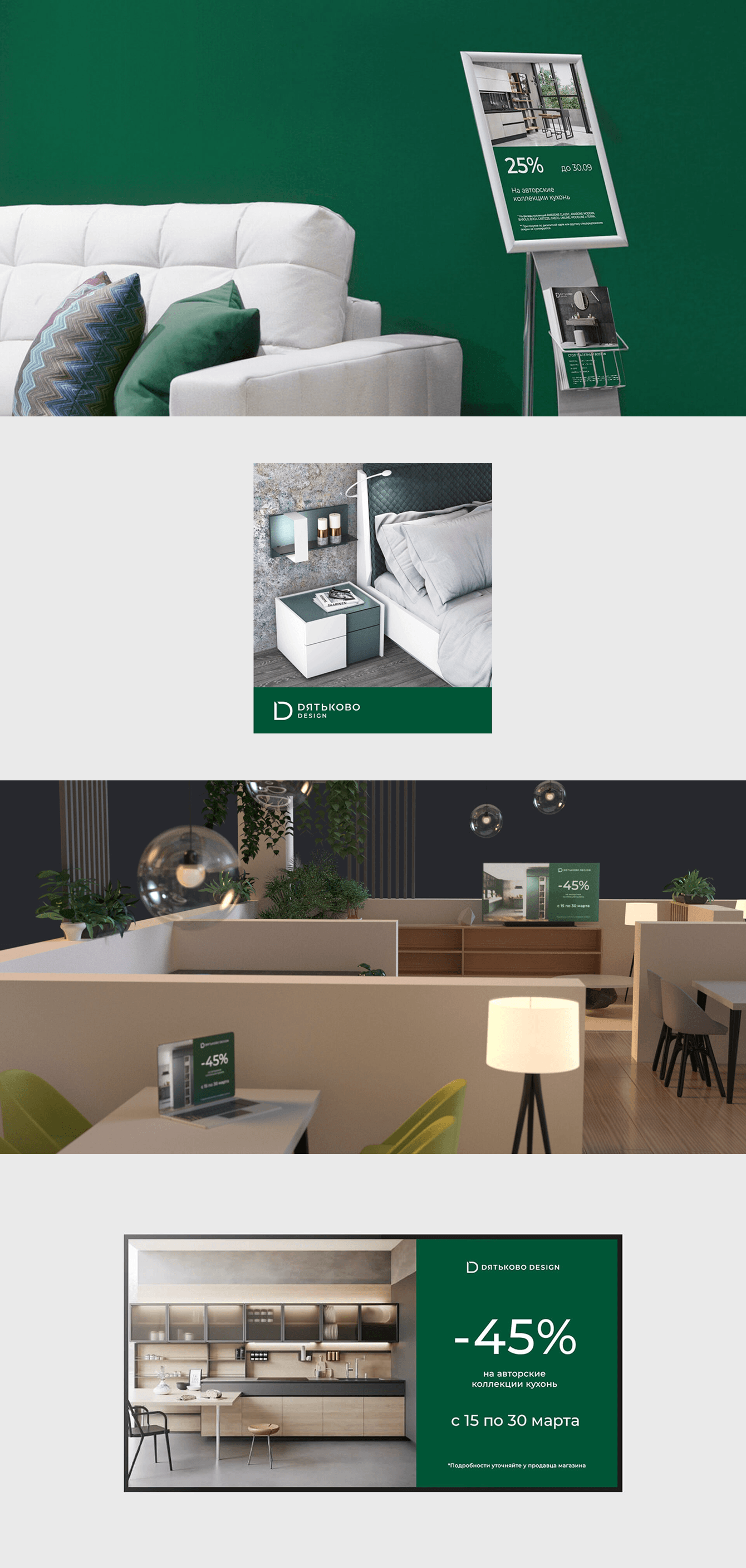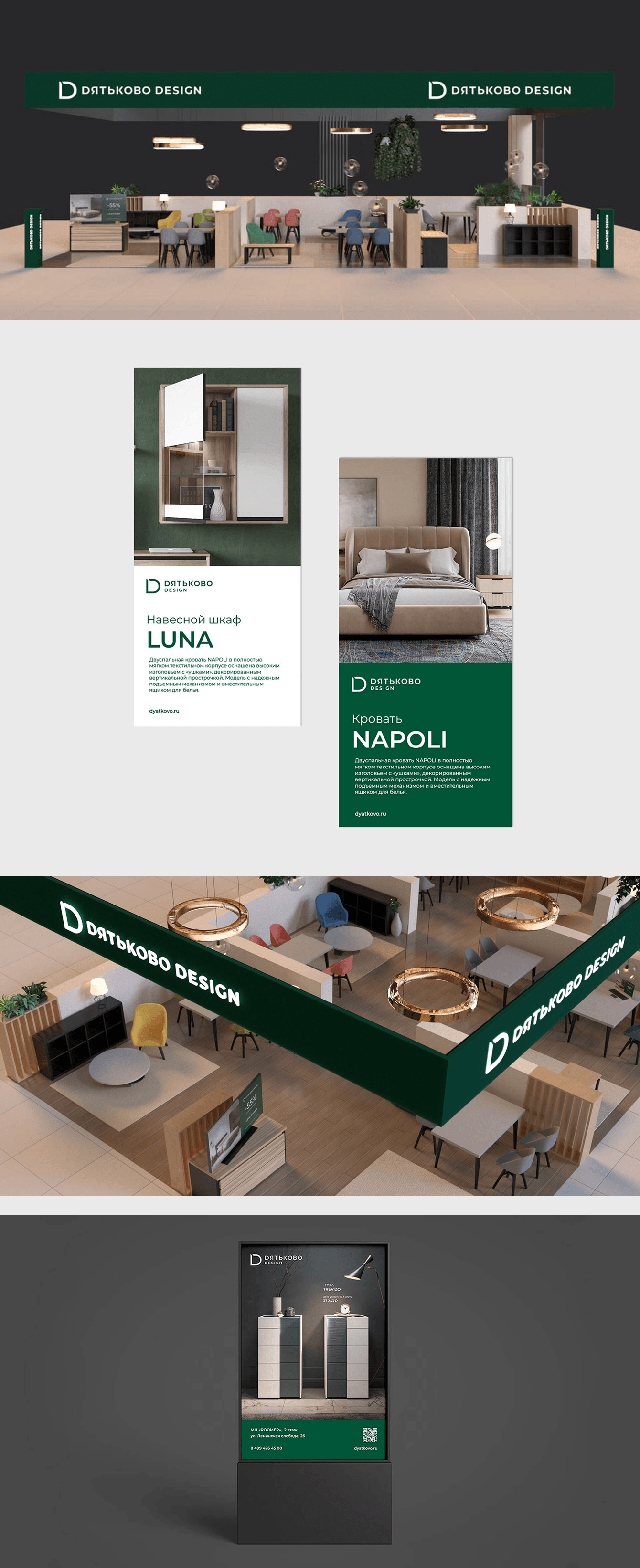 В основе логотипа — идея «благородной простоты». Мы разработали лаконичный шрифтовой логотип, дополненный фирменным знаком на основе латинской буквы D. Знак стал универсальным идентификатором бренда, который легко адаптируется к различным форматам — от компактных шильдиков на мебели до масштабных вывесок. Для усиления узнаваемости мы предусмотрели строчную и вертикальную компоновку логотипа, что позволяет бренду гибко использовать айдентику в зависимости от носителя.
