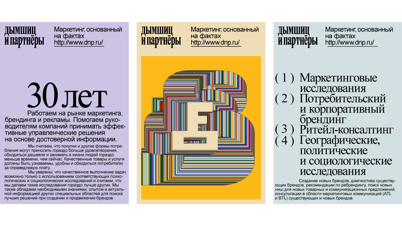 Цифры, графики, таблицы Excel и презентации в Power Point — типичная среда, в которой работает компания «Дымшиц и партнеры». Профессионалы компании доверяют только фактам, которые получают с помощью данных опросов, интервью и тестов. Мы сформулировали позиционирование бренда — «Маркетинг, основанный на фактах». Метафора: «Весь мир — данные».