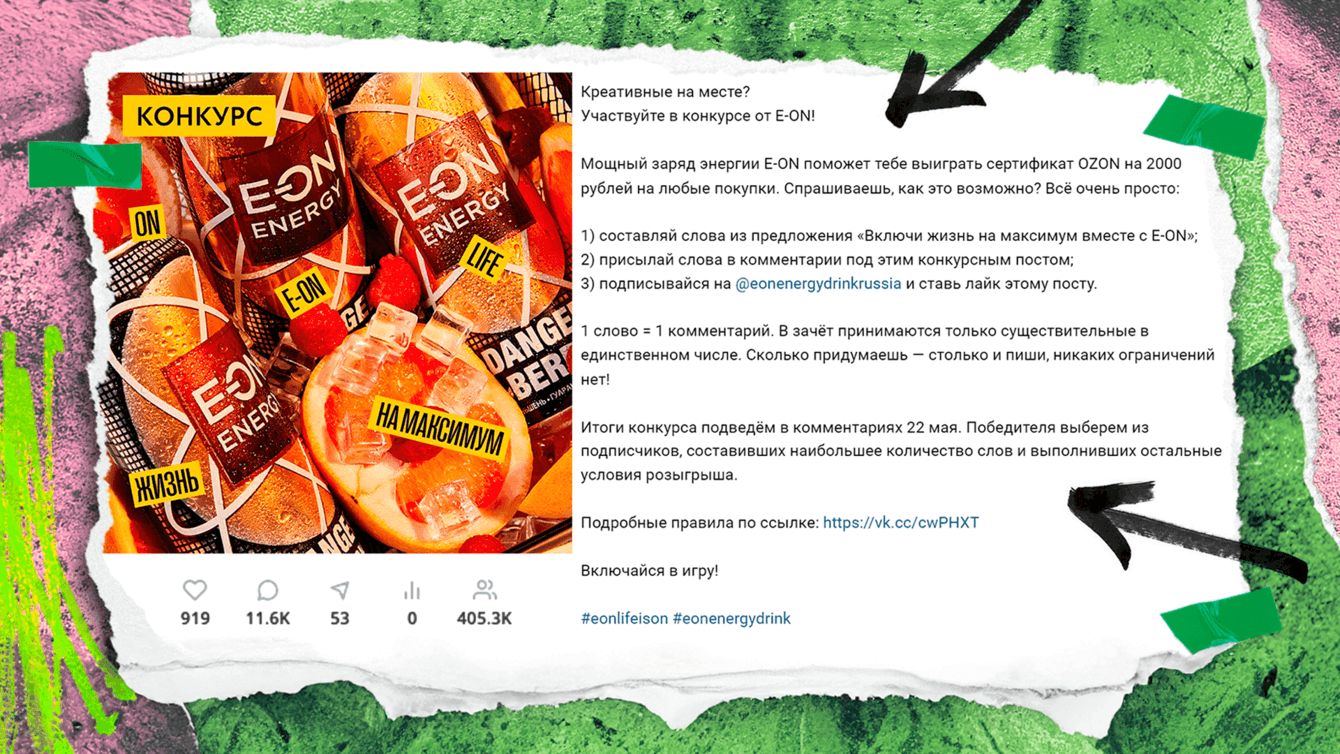 E-ON Energy — бренд энергетических напитков для молодых, активных и амбициозных людей. Мы начали сотрудничество по ведению социальных сетей E-ON Energy в начале 2024 года.