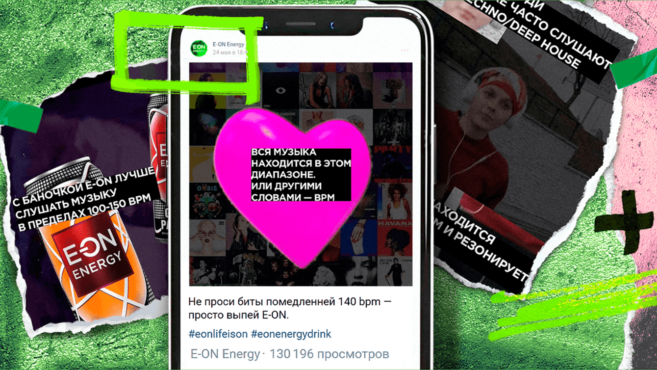 В результате у этих кадров будто есть голос, который говорит: «Давайте тусить, заряжайтесь энергией вместе с E-ON».