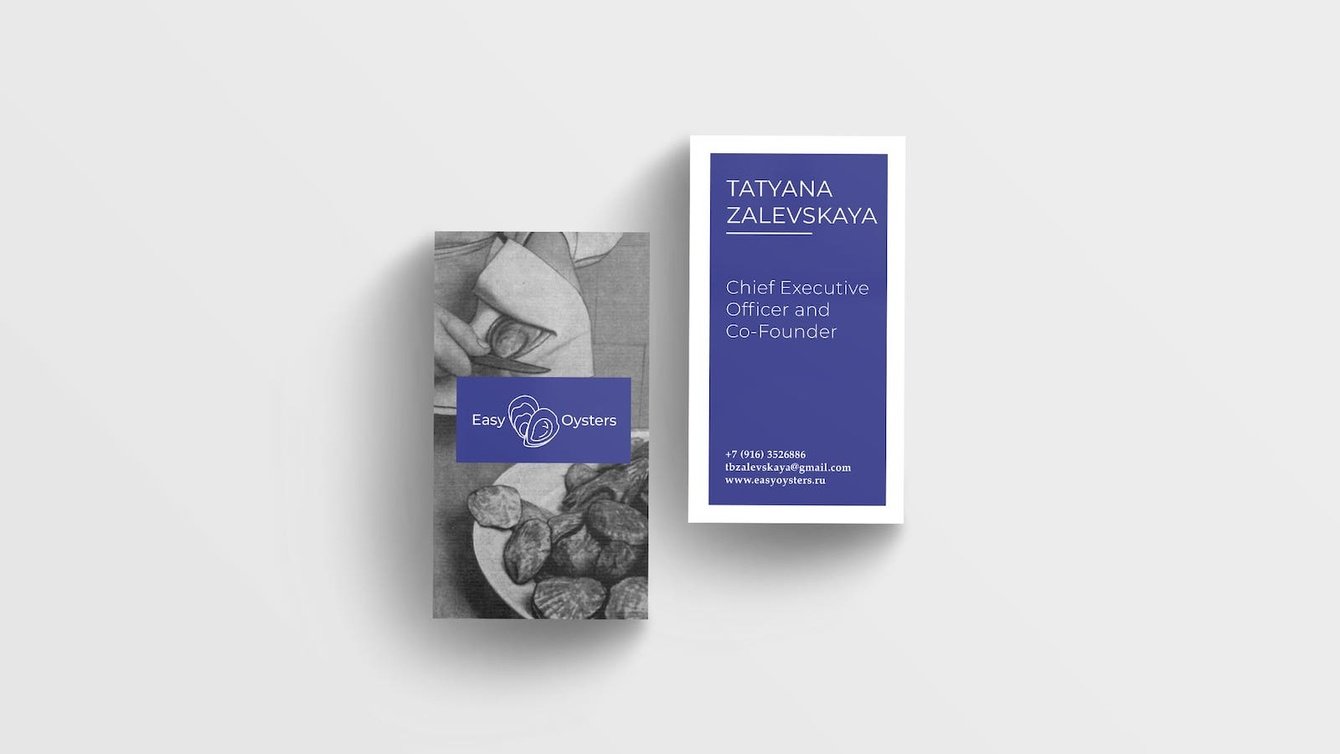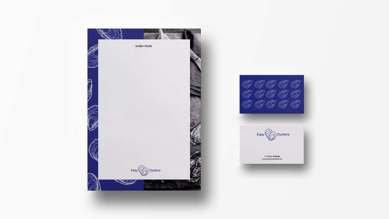 Работать над этим проектом было для нас большим удовольствием, мы взяли глубокий синий цвет, цвет стихии, бархата и сапфира, чтобы показать море и роскошь, ведь устрицы неотъемлемый атрибут богемного вечера. Его дополняет чистый белый, как морская пена, соль, и блики на воде, цвет свежести, бесконечности и чистоты. Во всем фирменном стиле используются старые снимки, они придают бренду шлейф истории и аристократичности, делаю его более сложным и целостным.