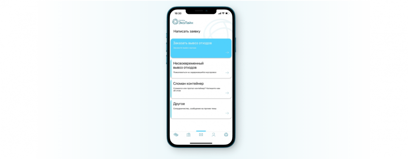 В приложении можно не только оставить заявку на вывоз мусора, но и сообщить о сломанном контейнере, пожаловаться на опоздавший мусоровоз и предложить сотрудничество.