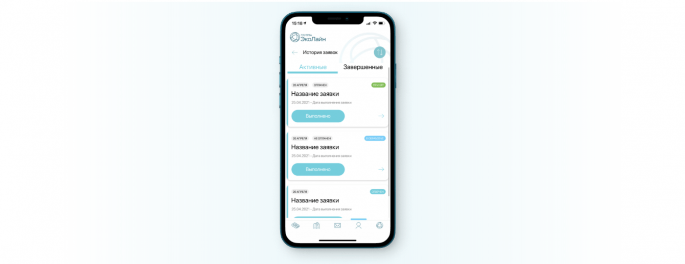 Все заявки разделены на «Активные» и «Завершенные». Выбрав быстрый фильтр вверху экрана, можно сразу найти нужную.