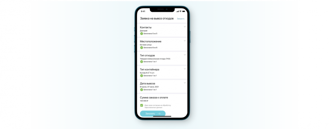 Заказ и оплата вывоза отходов со смартфона, мгновенная отправка обращений и интеграция с 1С