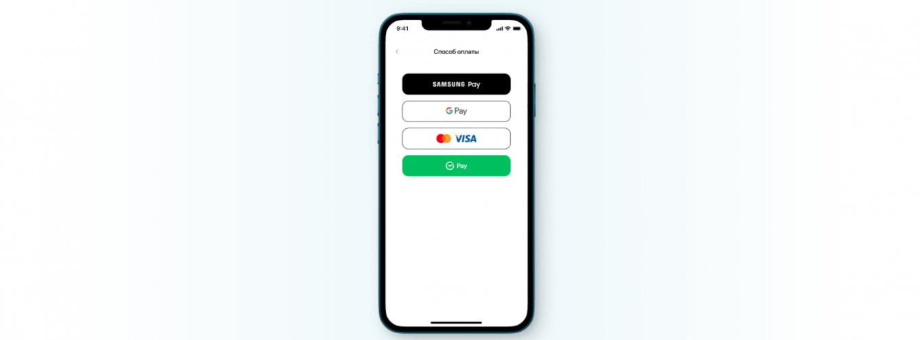 Доступные способы оплаты отображаются в зависимости от типа устройства.