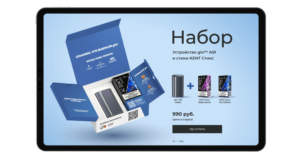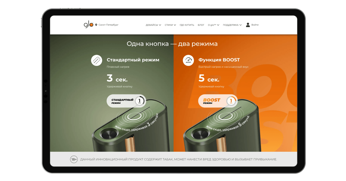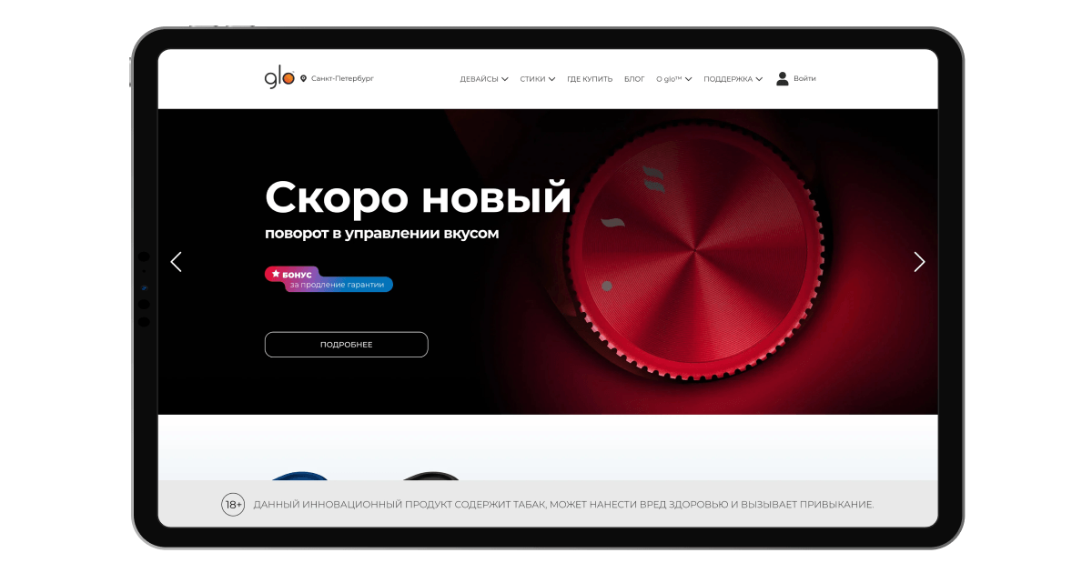 Для более персонализированного подхода к выбору продукции на сайте myglo.ru реализовали Stick Taste Navigator. В специальной анкете пользователи отвечают на несколько вопросов, после чего им предлагается продукция, соответствующая их вкусам. Алгоритм рекомендаций использует заданные параметры и атрибуты для точного подбора продукции.