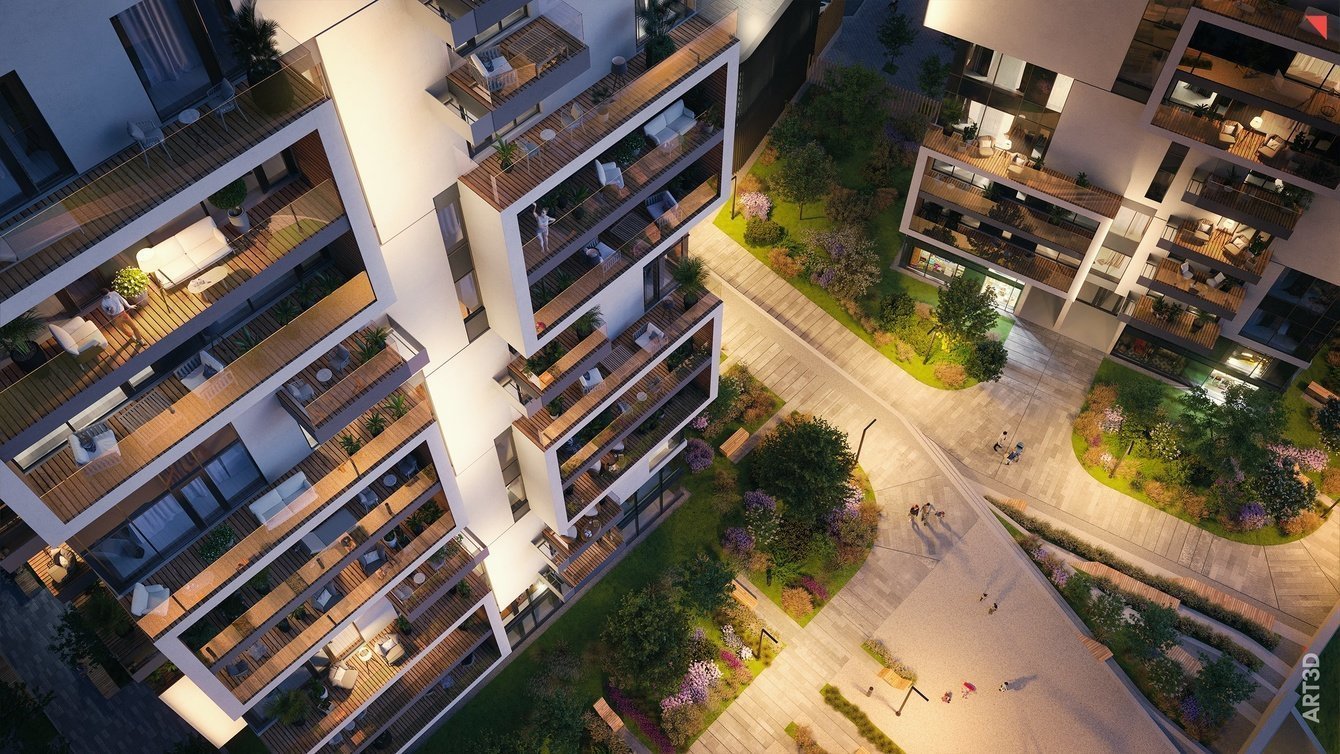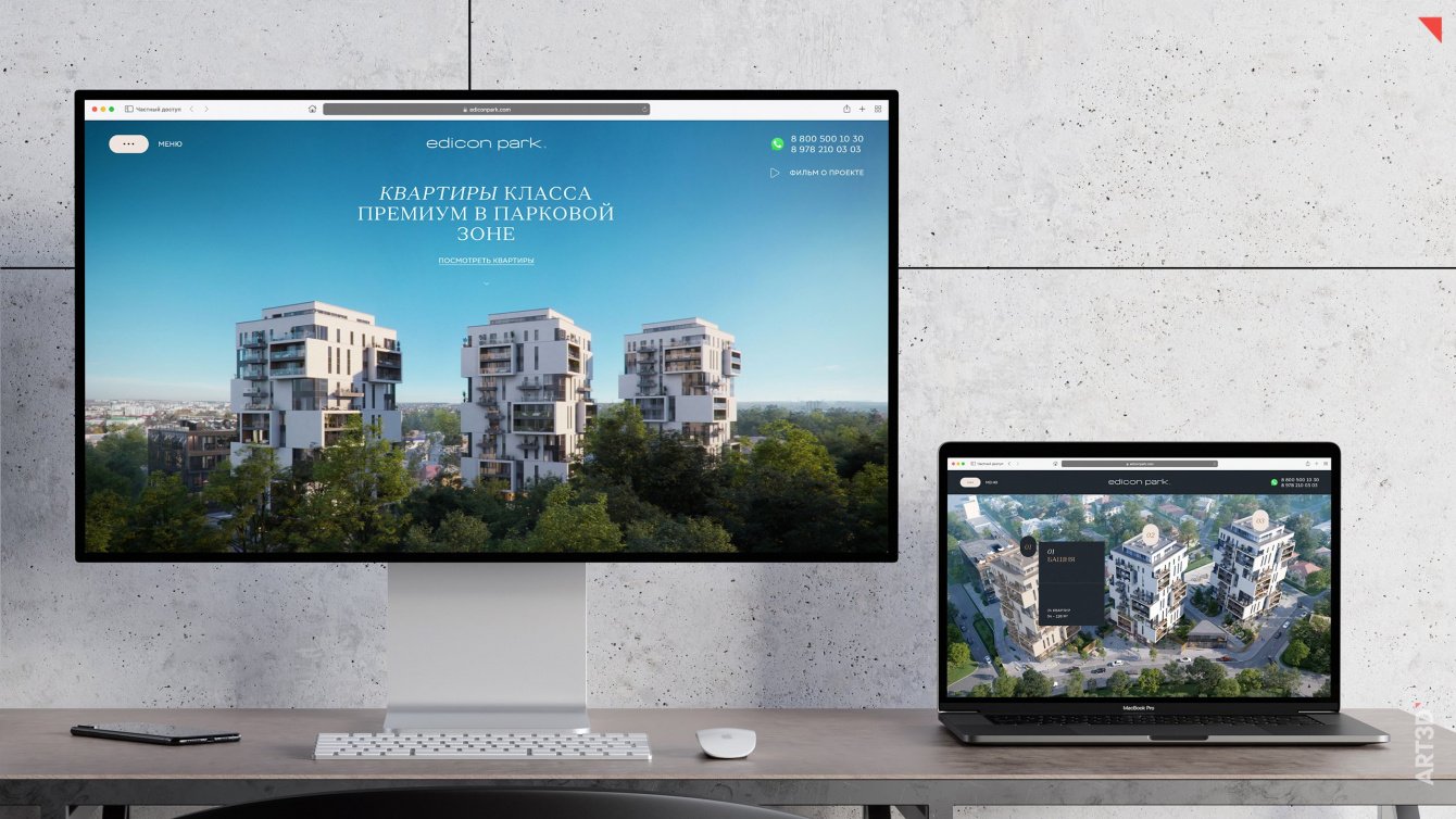 Команда ART3D разработала комплексный проект, который помимо логотипа и фирменного стиля включает все необходимые продающие рекламные материалы для старта продаж: 3D-визуализации и анимацию, съёмки с квадрокоптера с интеграцией 3D комплекса, архитектурный фильм и интерактивный, современный промо-сайт проекта.