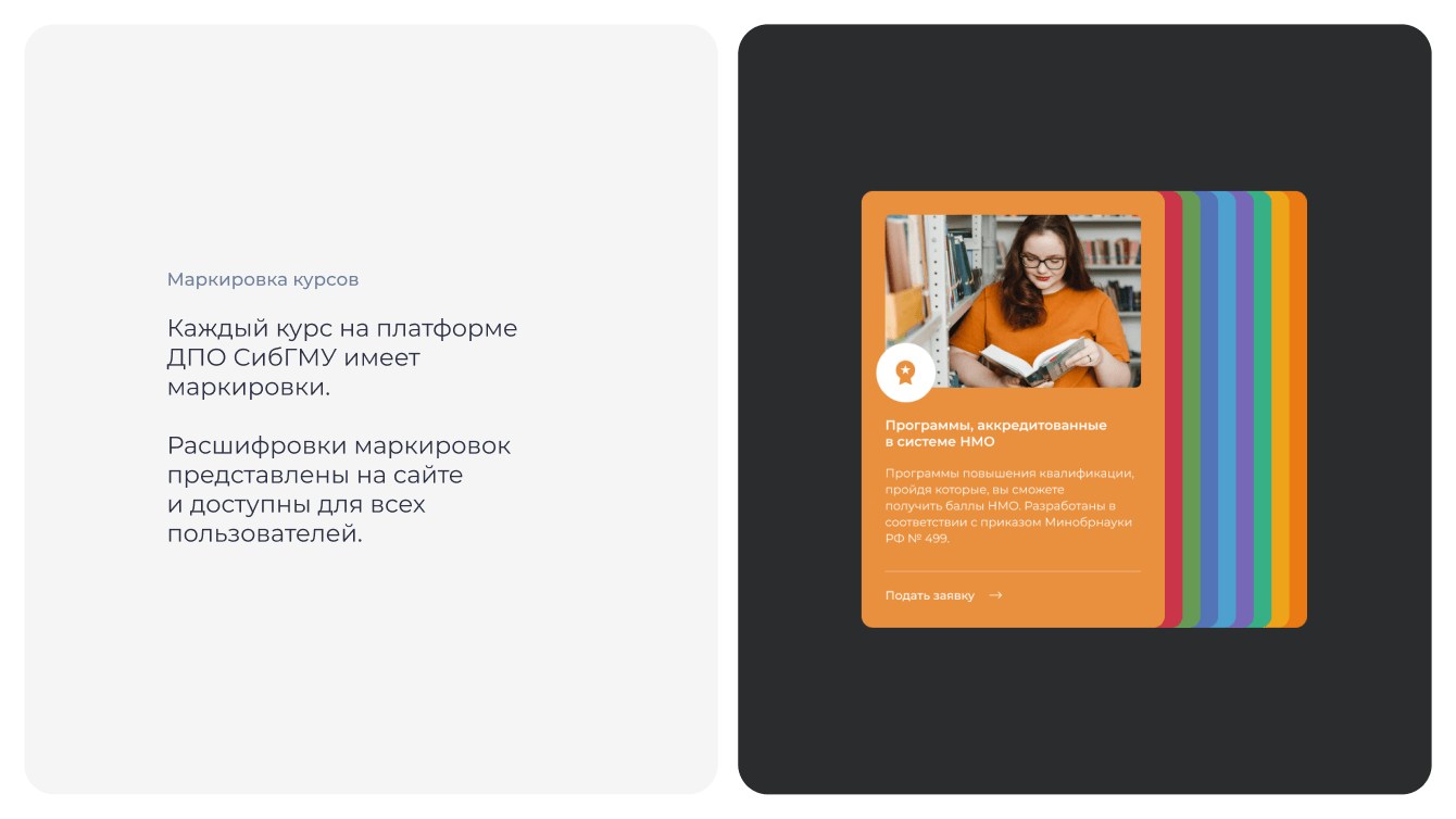 Все курсы на маркетплейсе имеют одну или несколько маркировок, у которых есть подробное описание. Это отображается и в фильтре, и внутри самого каталога.