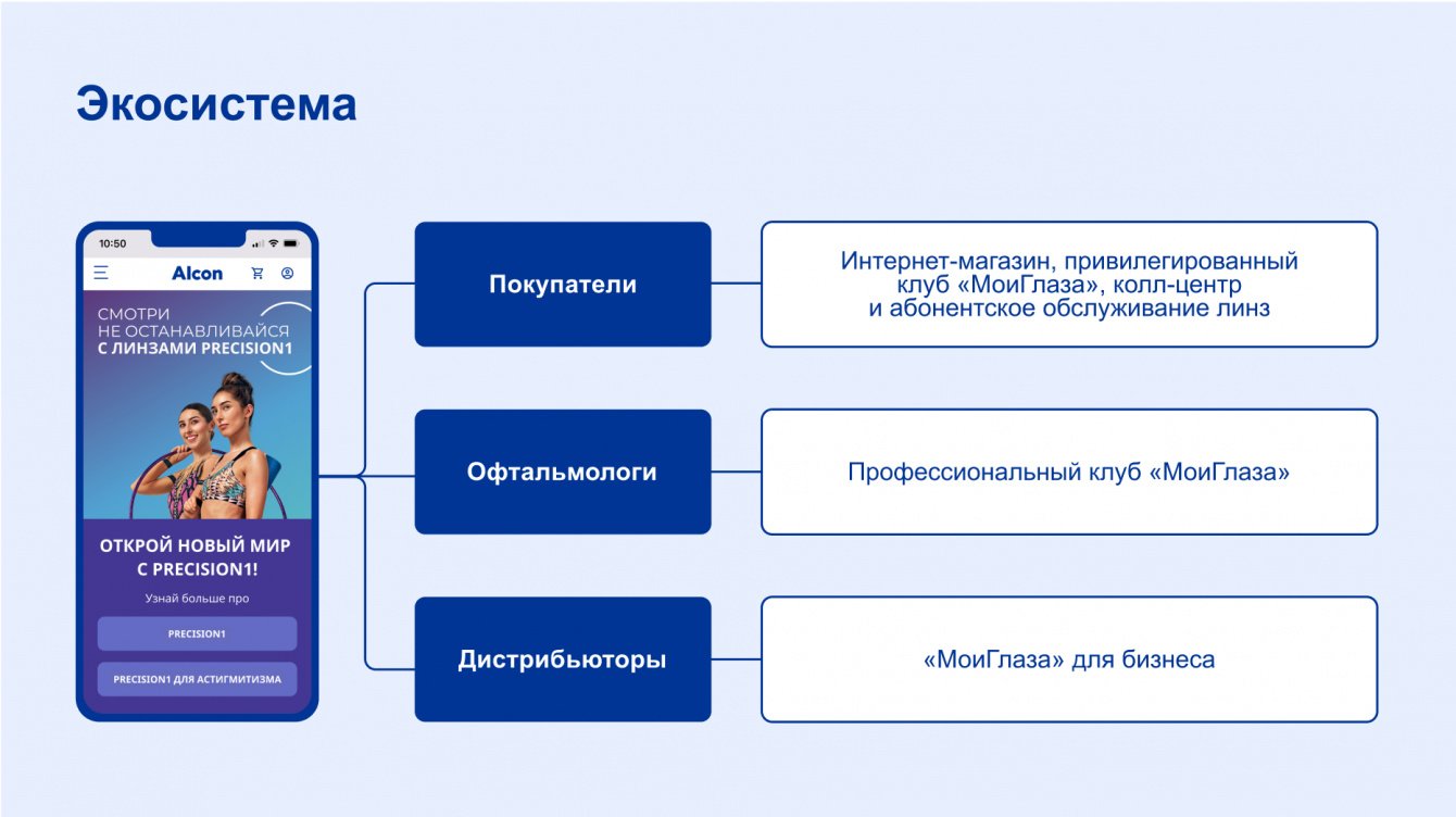 Увеличить долю рынка России через создание цифровой экосистемы для трех аудиторий — потребителей, специалистов в сфере офтальмологии и партнерских оптик.