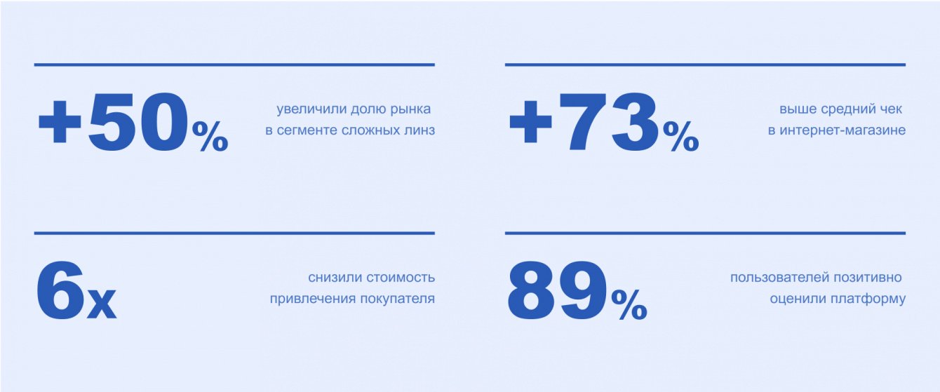 После запуска платформы трафик в офлайн-точках увеличился на 40%, средний чек в оптиках вырос на 10%. Более 90% представителей партнерских оптик оценили работу с Alcon на высший балл. Платформа «МоиГлаза» демонстрирует, как эффективные IT-решения способствуют увеличению выручки и повышению качества сервиса даже в сложных сегментах бизнеса.