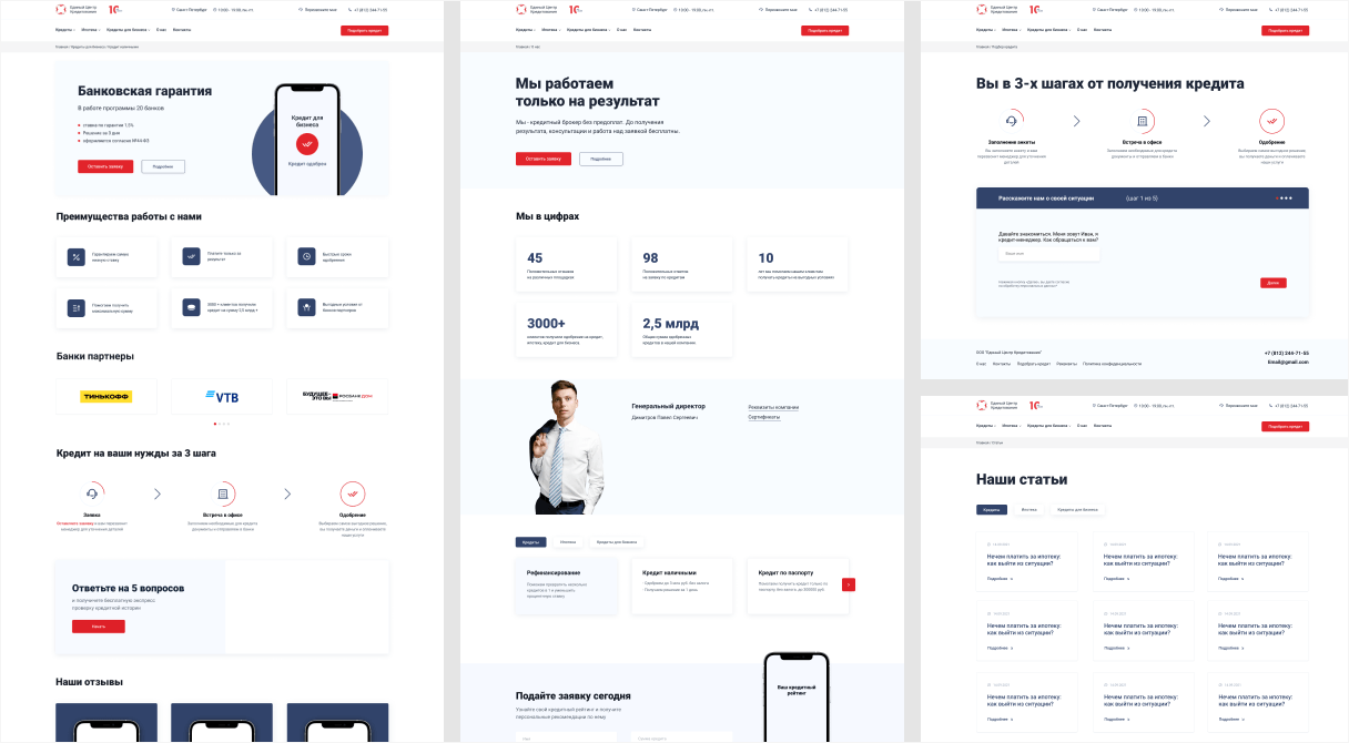 Макет выполнен в светлых тонах с ярким акцентным цветом. На основании проведенных исследований, дизайн должен быть похож на сайты известных банков, чтобы вызвать у посетителя чувство доверия и безопасности.