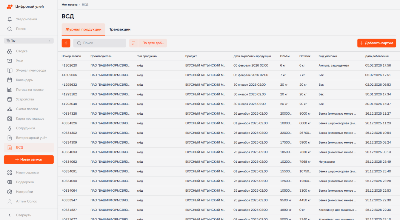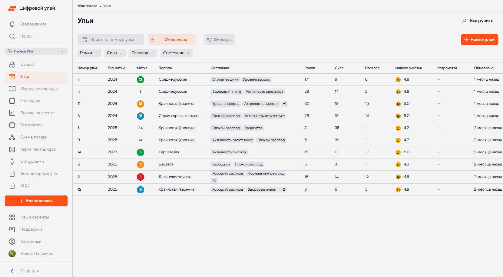 Платформа ЕЦПП позволяет полностью контролировать свои пасеки, не пропускать важных ветеринарных мероприятий и опылений, следить за статистикой ульев и снижать производственные расходы, избегать штрафов и возможных ошибок.