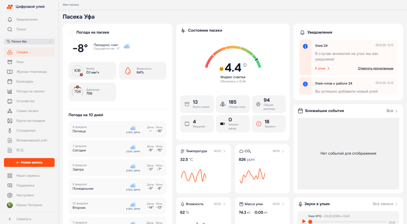 4. Инструменты контроля показателей ульев (настроение/температура/болезни пчел).