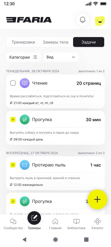 регистрировать и отслеживать ежедневные привычки и тренировки;
